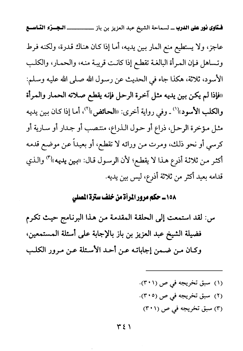 158 - حكم مرور المرأة من خلف سترة المصلي
