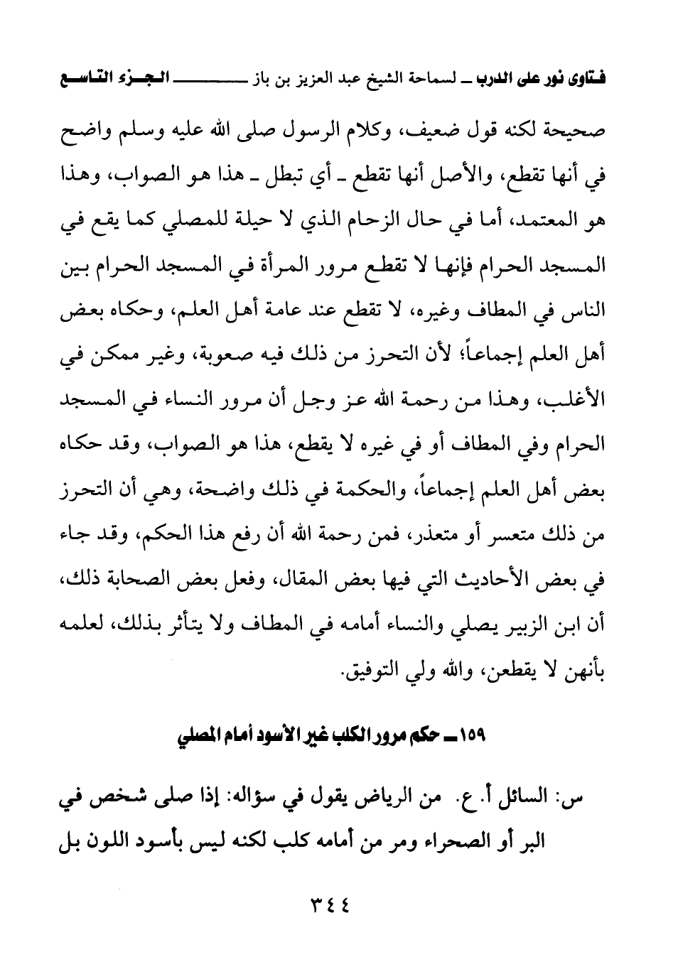 159 - حكم مرور الكلب غير الأسود أمام المصلي