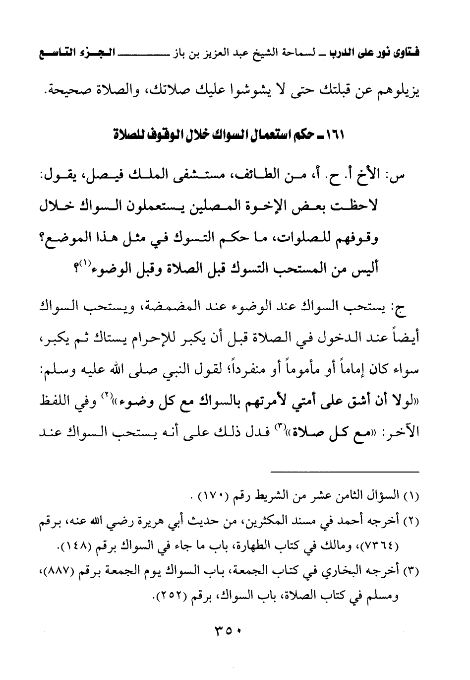 161 - حكم استعمال السواك خلال الوقوف للصلاة