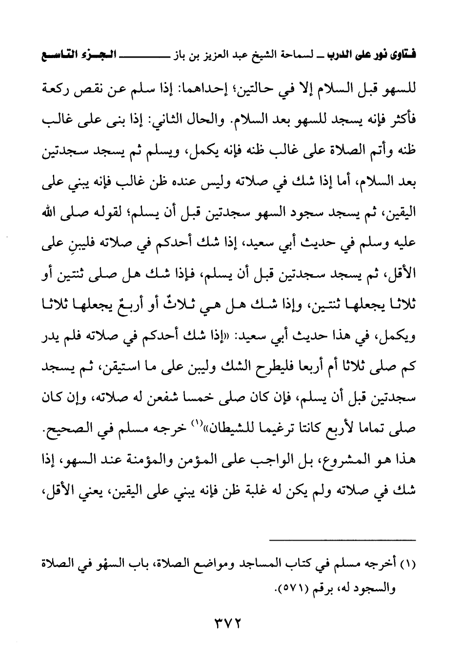 (¬1) أخرجه مسلم في كتاب المساجد ومواضع الصلاة، باب السهو في الصلاة والسجود له، برقم (571).