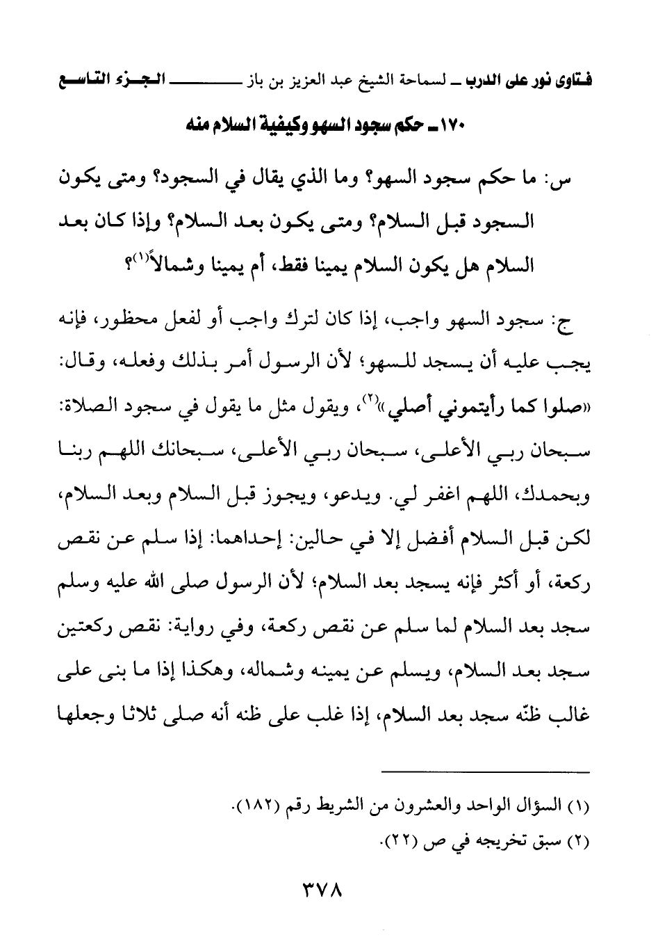كتاب فتاوى نور على الدرب لابن باز بعناية الشويعر (اسم الجزء: 9)
