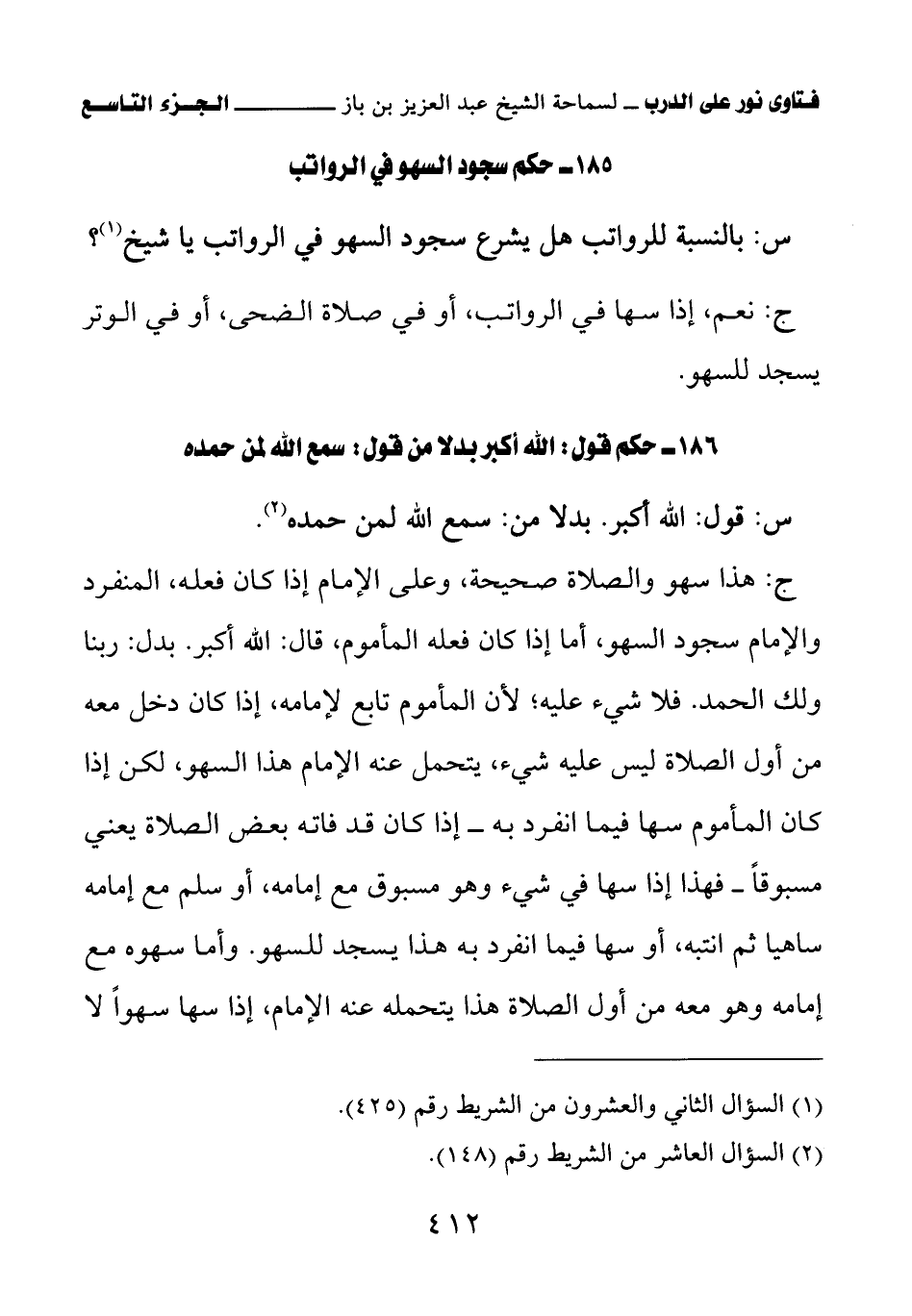 س: بالنسبة للرواتب؛ هل يشرع سجود السهو في الرواتب يا شيخ (¬1)؟