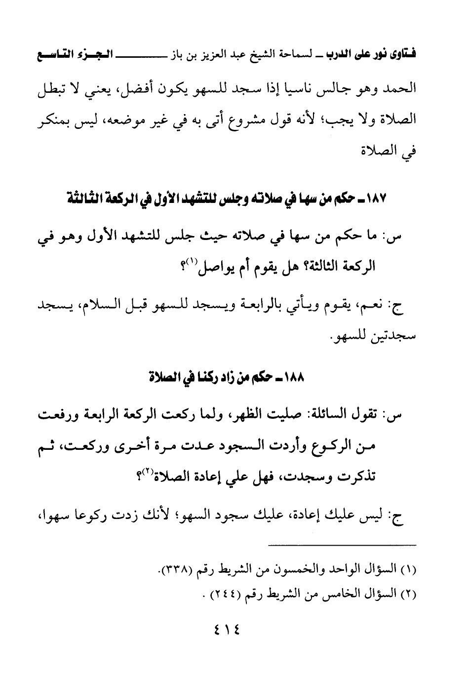 187 - حكم من سها في صلاته للتشهد الأول في الركعة الثالثة