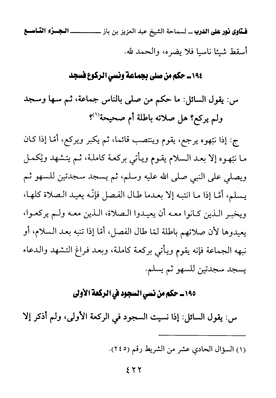 194 - حكم من صلى بجماعة ونسي الركوع فسجد