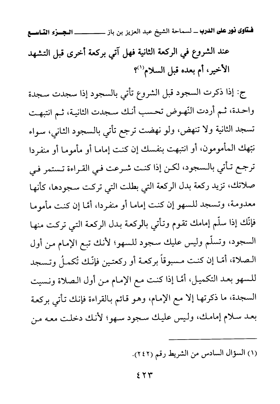 كتاب فتاوى نور على الدرب لابن باز بعناية الشويعر (اسم الجزء: 9)