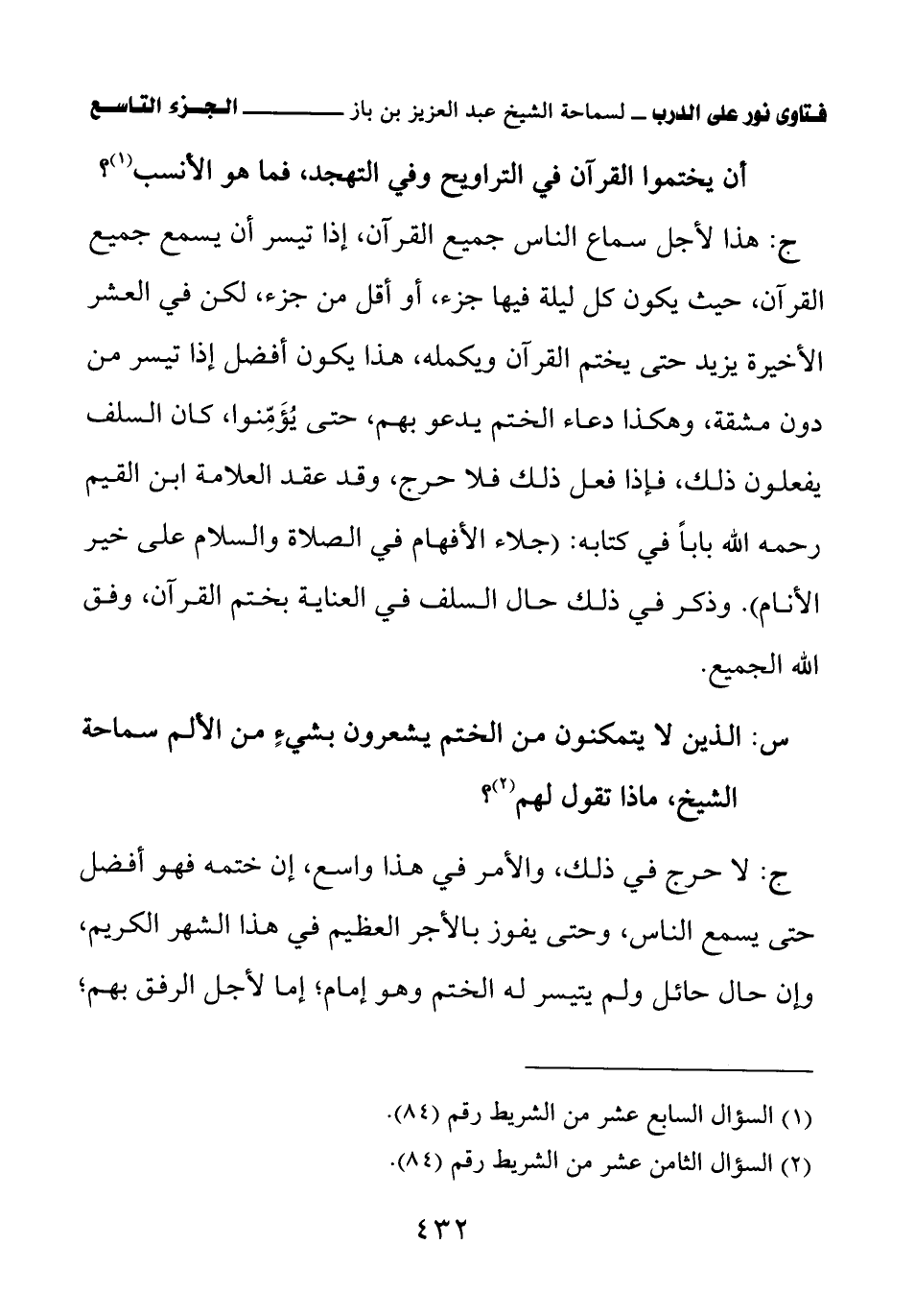 كتاب فتاوى نور على الدرب لابن باز بعناية الشويعر (اسم الجزء: 9)