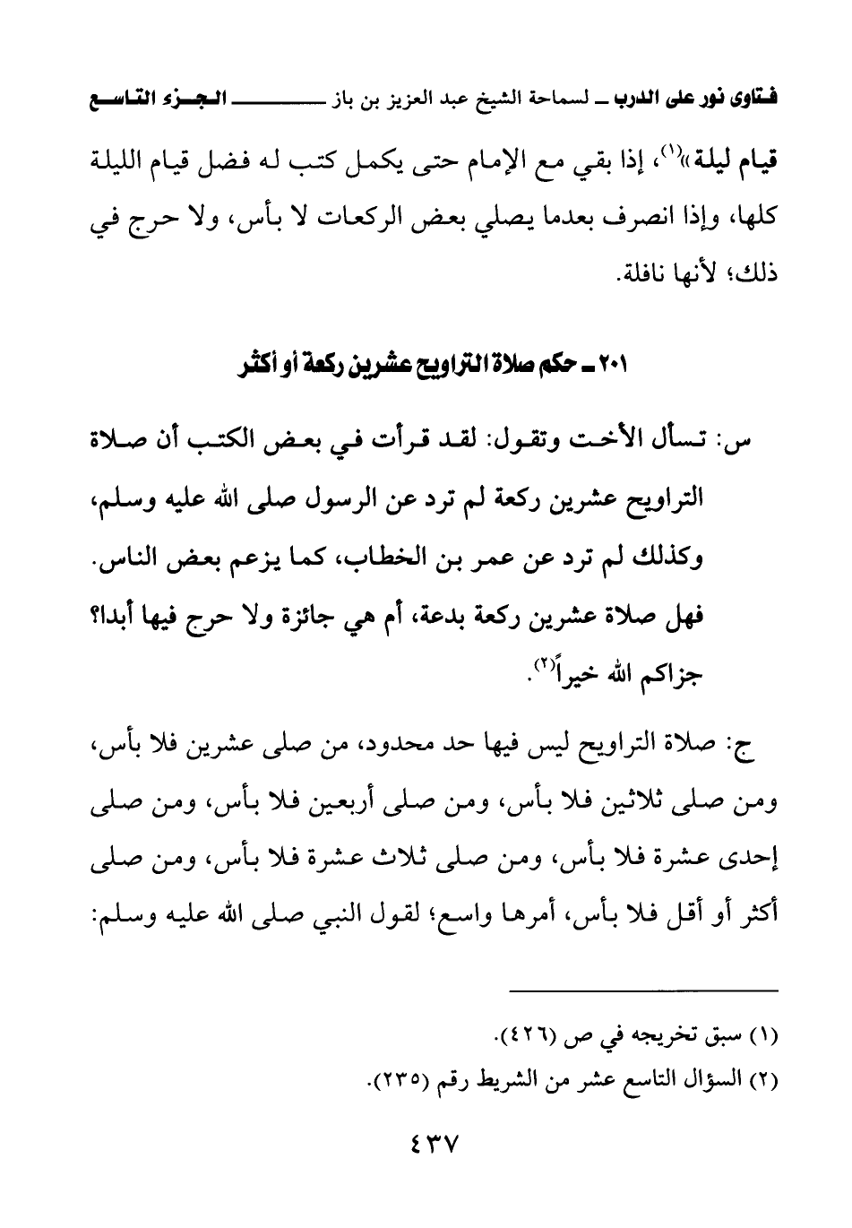 201 - حكم صلاة التراويح عشرين ركعة أو أكثر