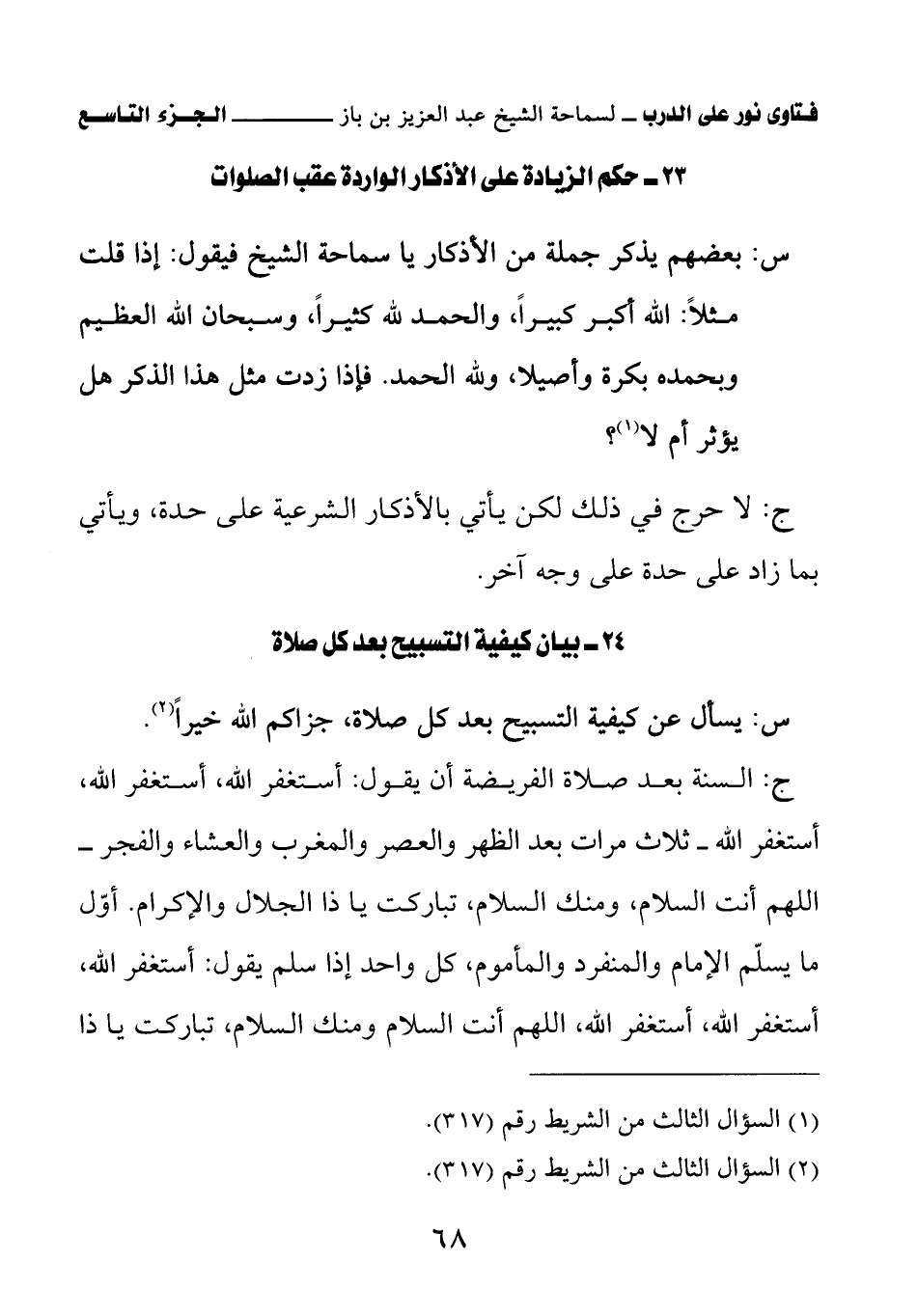 23 - حكم الزيادة على الأذكار الواردة عقب الصلوات