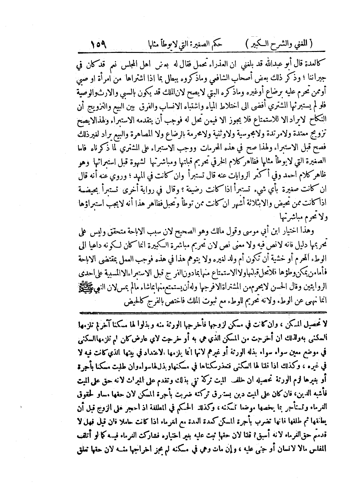 لا تحصيل المسكن، وإن كانت في مسكن لزوجها فأخرجها الورثة منه وبذلوا لها مسكناً آخر لم تلزمها السكنى به ولذلك إن أخرجت من المسكن الذي هي به أو خرجت لأي عارض كان لم تلزمها السكنى في موضع معين سواه سواء بذله الورثة أو غيرهم لأنها إنما يلزمها الاعتداد في بيتها الذي كانت فيه لا في غيره، وكذلك إذا قلنا لها السكنى فتعذر سكناها في مسكنها وبذل لها سواه وإن طلبت مسكناً بأجرة أو بغيرها لزم الورثة تحصيله إن خلف الميت تركة تفي بذلك وتقدم على الميراث لأنه حق على الميت فأشبه الدين، فإن كان على الميت دين يسترق تركته ضربت بأجرة المسكن لأن حقها مساو لحقوق الغرماء وتستأجر بما يخصها موضعها تسكنه، وكذلك الحكم في المطلقة إذا حجر على الزوج قبل أن يطلقها ثم طلقها فإنها تضرب باجرة المسكن كمدة العدة مع الغرماء إذا كانت حاملاً فان قيل فهل لا قدمتم حق الغرماء لأنه أسبق؟ قلنا لأن حقها ثبت عليه بغير اختياره فشاركت الغرماء فيه كما لو اتلف المفلس مالاً لإنسان أو جنى عليه، وإن مات وهي في مسكنه لم يجز إخراجها منه لأن حقها تعلق
