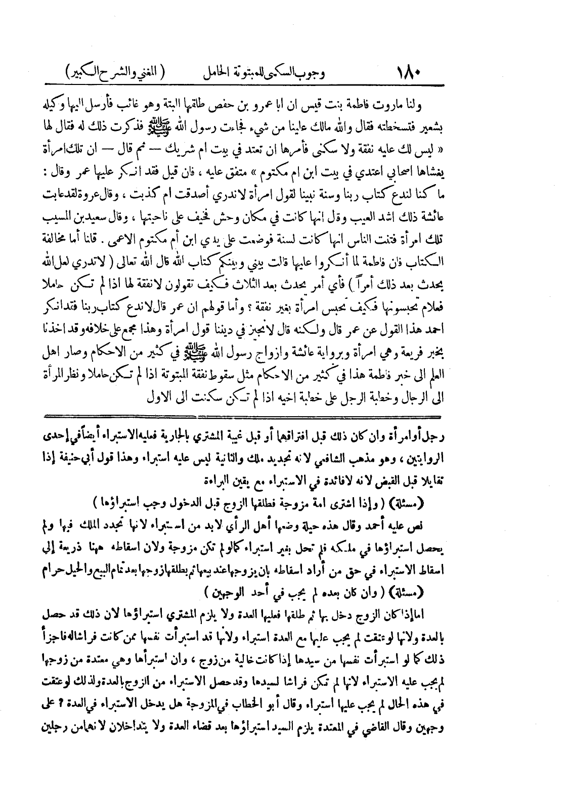 رجل أو امرأة وإن كان ذلك قبل افتراقهما او قبل غيبة المشتري بالجارية فعليه الاستبراء أيضاً في إحدى الروايتين، وهو مذهب الشافعي لأنه تجديد ملك والثانية ليس عليه استبراء وهذا قول أبي حنيفة إذا تقايلا قبل القبض لأنه لا فائدة في الاستبراء مع يقين البراءة (مسألة) (وإذا اشترى أمة مزوجة فطلقها الزوج قبل الدخول وجب استبراؤها) نص عليه أحمد وقال هذه حيلة وضعها أهل الرأي لابد من استبراء لأنها تجدد الملك فيها ولم يحصل استبراؤها في ملكه فلم تحل بغير استبراء كما لو لم تكن مزوجة ولأن إسقاطه ههنا ذريعة إلى إسقاط الاستبراء في حق من أراد اسقاطه بان يزوجها عند بيعها ثم يطلقها زوجها بعد تمام البيع والحيل حرام