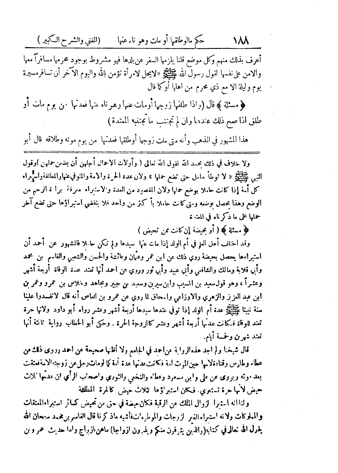 الوضع وهذا يحصل بوضعه ومتى كانت حاملاً بأكثر من واحد فلا ينقضي استبراؤها حتى تضع آخر حملها على ما ذكرناه في المعتدة (مسألة) (أو بحيضة إن كانت ممن تحيض) وقد اختلف أهل العلم في أم الولد مات عنها سيدها ولم تكن حاملاً فالمشهور عن أحمد أن استبراءها يحصل بحيضة روى ذلك عن ابن عمر وعثمان وعائشة والحسن والشعبي والقاسم بن محمد وأبي قلابة ومالك والشافعي وأبي ثور وروى عن أحمد أنها تعتد عدة الوفاة أربعة أشهر وعشراً، وهو قول سعيد بن المسيب وابن سيرين وسعيد بن جبير ومجاهد وخلاس بن عمرو وعمر بن ابن عبد العزيز والزهري والاوزاعي واسحاق لما روي عن عمرو بن العاص أنه قال لا تفسدوا علينا سنة نبينا صلى الله عليه وسلم عدة أم الولد إذا توفي عتدها سيدها أربعة أشهر وعشر رواه أبو داود ولأنها حرة تعتد للوفاة فكانت عدتها أربعة أشهر وعشر كالزوجة الحرة.