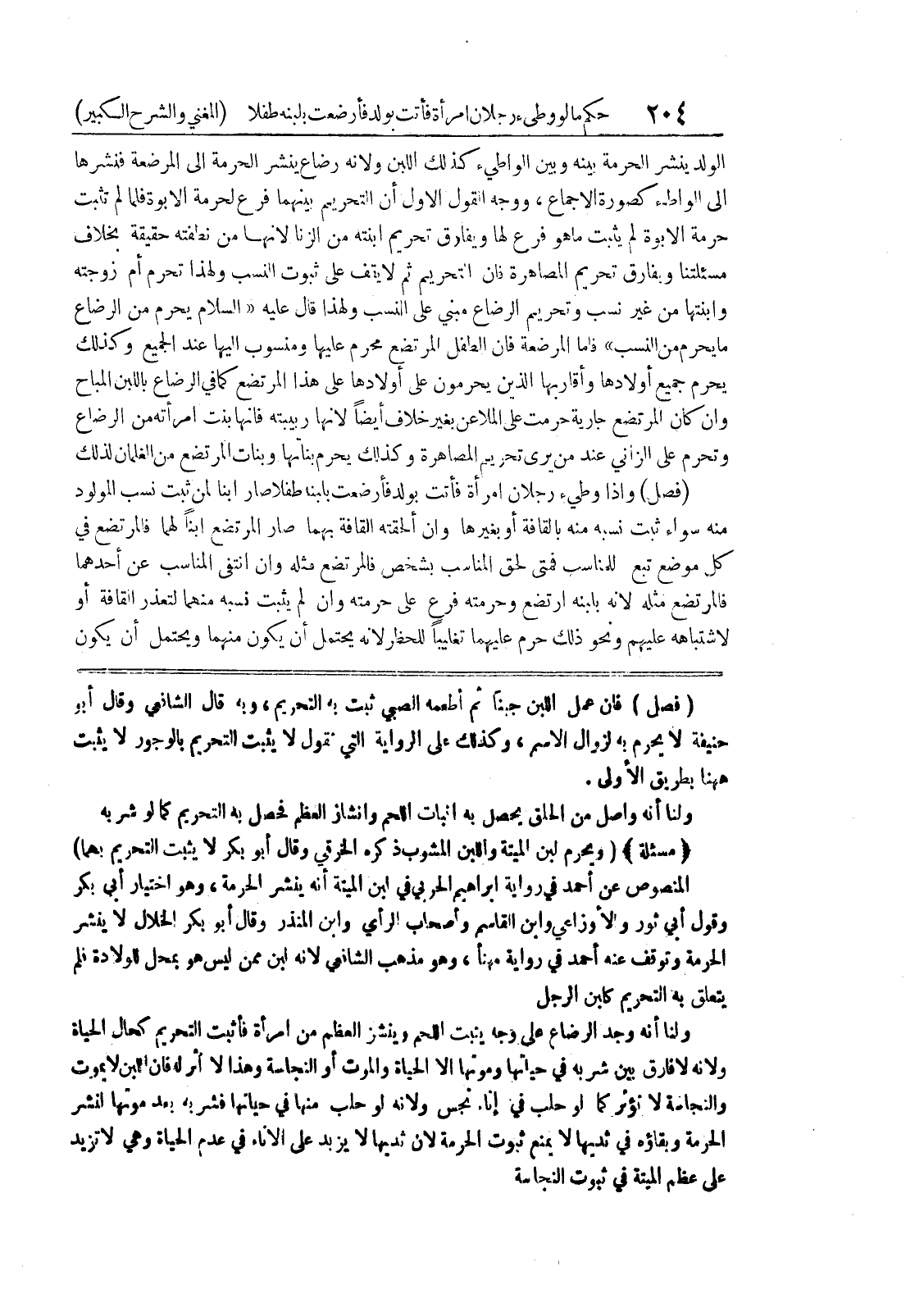 ولنا أنه واصل من الحلق يحصل به إنبات اللحم وإنشاز العظم فحصل به التحريم كما لو شربه (مسألة) (ويحرم لبن الميتة واللبن المشوب ذكره الخرقي وقال أبو بكر لا يثبت التحريم بهما) المنصوص عن أحمد في رواية إبراهيم الحربي في لبن الميتة أنه ينشر الحرمة، وهو اختيار أبي بكر وقول أبي ثور والاوزاعي وابن القاسم وأصحاب الرأي وابن المنذر وقال أبو بكر الخلال لا ينشر الحرمة وتوقف عنه أحمد في رواية مهنا، وهو مذهب الشافعي لأنه لبن ممن ليس هو بمحل للولادة فلم يتعلق به التحريم كلبن الرجل ولنا أنه وجد الرضاع على وجه يثبت اللحم وينشز العظم من امرأة فأثبت التحريم كحال الحياة