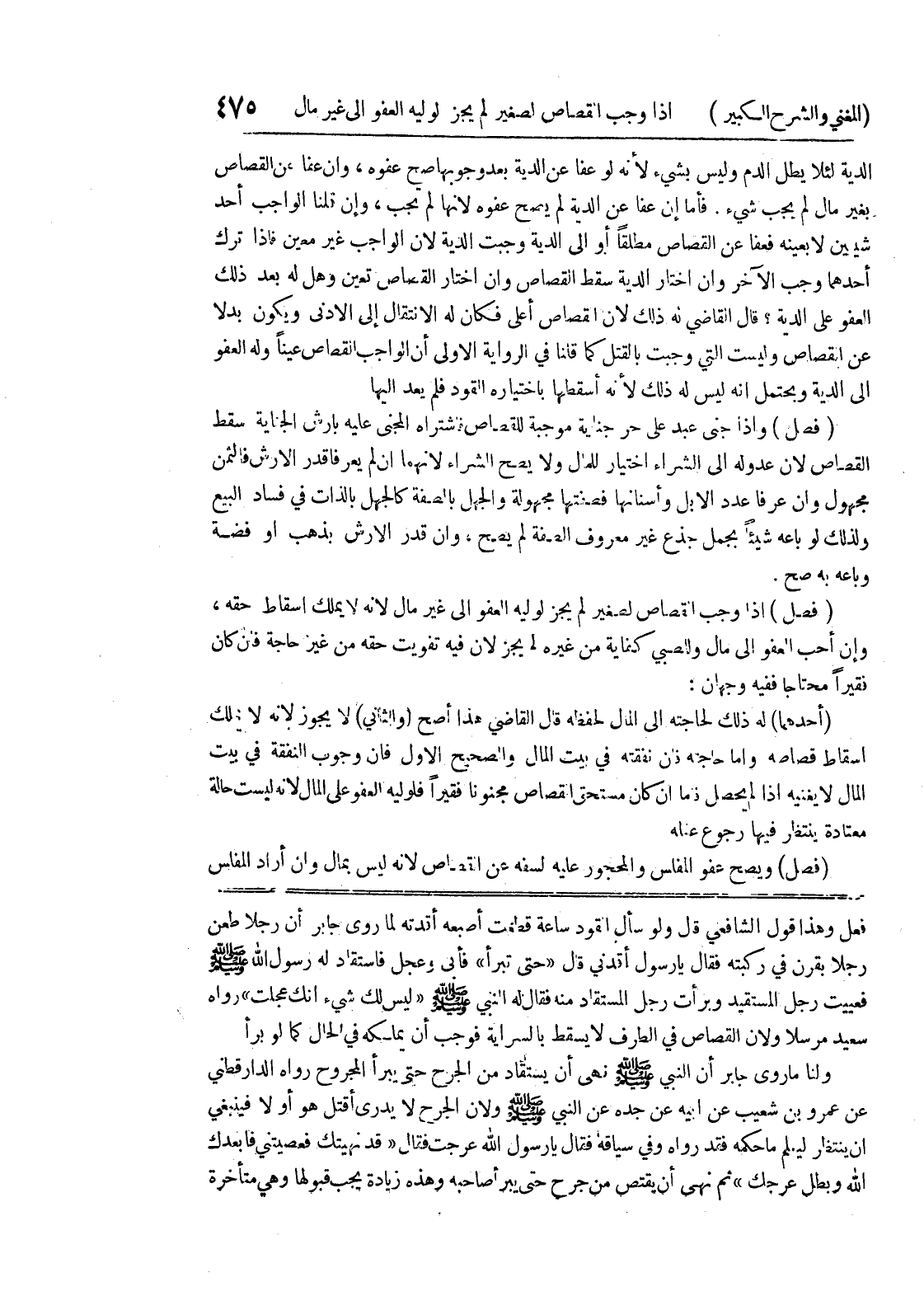 فعل وهذا قول الشافعي قال ولو سأل القود ساعة قطعت أصبعه أقدته لما روى جابر أن رجلاً طعن رجلاً بقرن في ركبته فقال يا رسول الله أقدني قال " حتى تبرأ " فأني وعجل فاستقاد له رسول الله صلى الله عليه وسلم فعييت رجل المستقيد وبرأت رجل المستقيد منه فقال له النبي صلى الله عليه وسلم " ليس لك شئ إنك عجلت " رواه سعيد مرسلاً ولأن القصاص في الطرف لا يسقط بالسراية فوجب أن يملكه في الحال كما لو برأ ولنا ما روى جابر أن النبي صلى الله عليه وسلم نهى أن يستقاد من الحرج حتى يبرأ المجروح رواه الدارقطني عن عمرو بن شعيب عن أبيه عن جده عن النبي صلى الله عليه وسلم ولأن الجرح لا يدرى أقتل هو أو لا فينبغي أن ينتظر ليعلم ما حكمه فقد رواه وفي سياقه فقال يا رسول الله عرجت فقال " قد نهيتك فعصيتني فأبعدك الله وبطل عرجك " ثم نهى أن يقتص من جرح حتى يبرأ صاحبه وهذه زيادة يجب قبولها وهي متأخرة