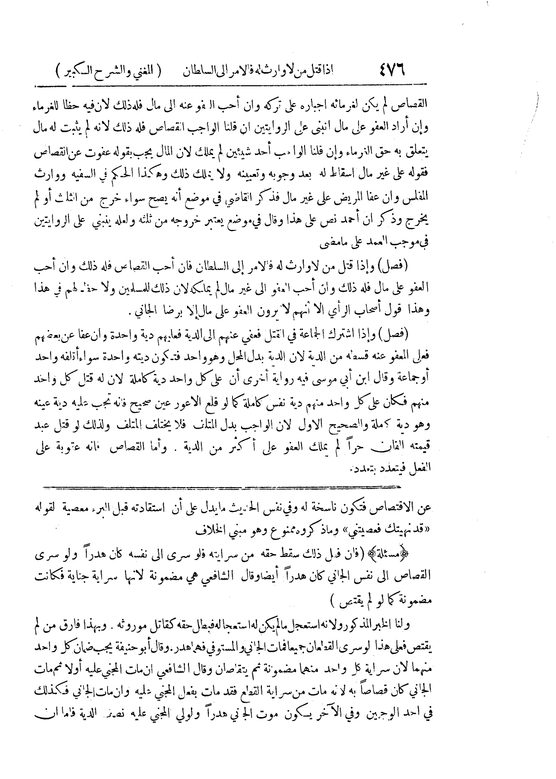 عن الاقتصاص فتكون ناسخة له وفي نفس الحديث ما يدل على أن استقادته قبل البرء معصية لقوله " قد نهيتك فعصيتني " وما ذكروه ممنوع وهو مبنى الخلاف (مسألة) (فان فعل ذلك سقط حقه من سرايته فلو سرى إلى نفسه كان هدراً ولو سرى القصاص الى نفس الجاني كان هدراً أيضاً وقال الشافعي هي مضمونة لأنها سراية جناية فكانت مضمونة كما لو لم يقتص) ولنا الخبر المذكور ولأنه استعجل ما لم يكن له إستعجاله فبطل حقه كقاتل موروثه.