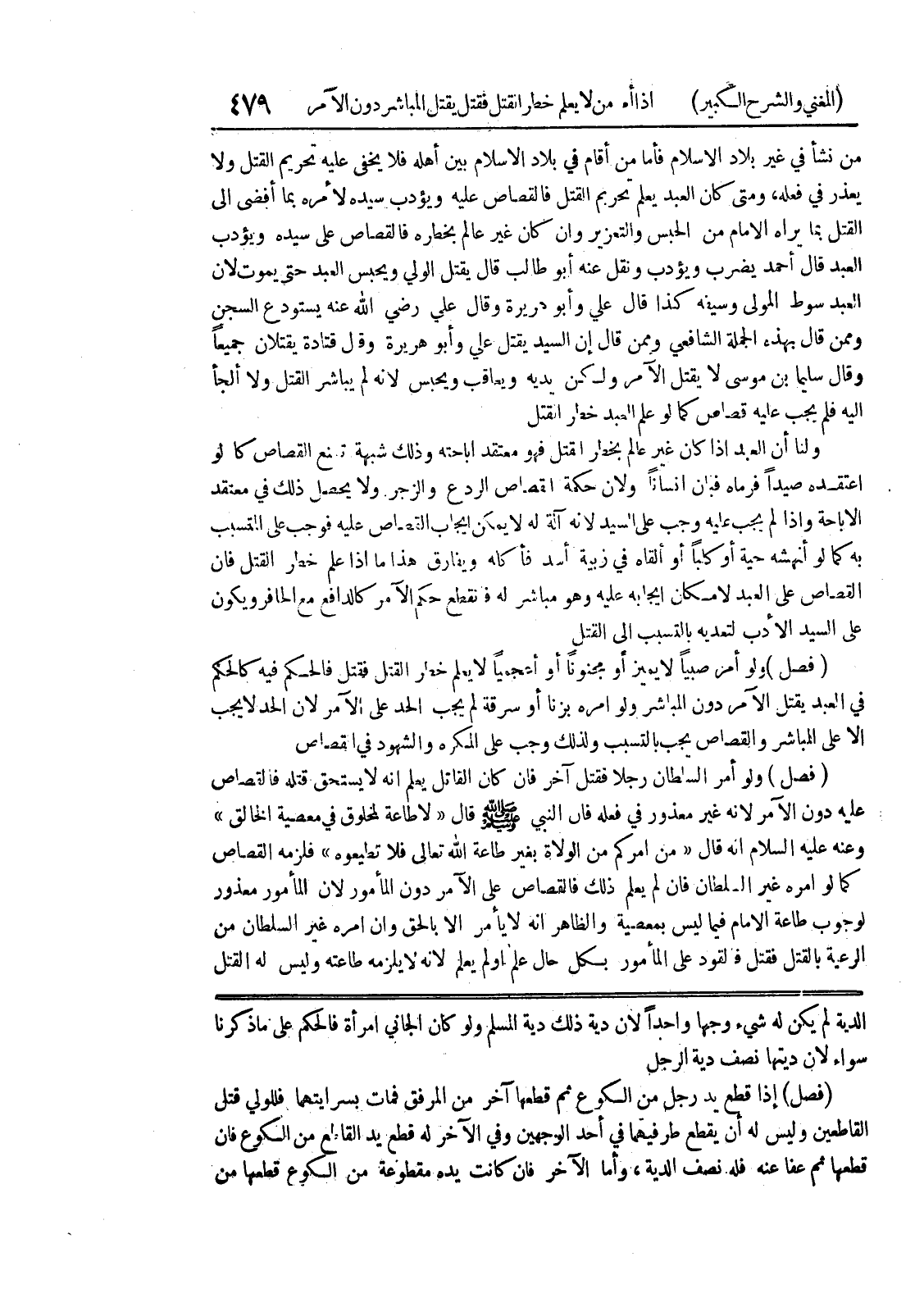 الدية لم يكن له شئ وجهان واحداً لأن دية لك دية المسلم ولو كان الجاني امرأة فالحكم على ما ذكرنا سواء لأن ديتها نصف دية الرجل (فصل) إذا قطع يد رجل من الكوع ثم قطعها آخر من المرفق فمات بسرايتهما فللولي قتل القاطعين وليس له أن يقطع طرفيهما في أحد الوجهين وفي الآخر له قطع يد القاطع من الكوع فإن قطعها ثم عفا عنه فله نصف الدية، وأما الآخر فإن كانت يده مقطوعة من الكوع قطعها من