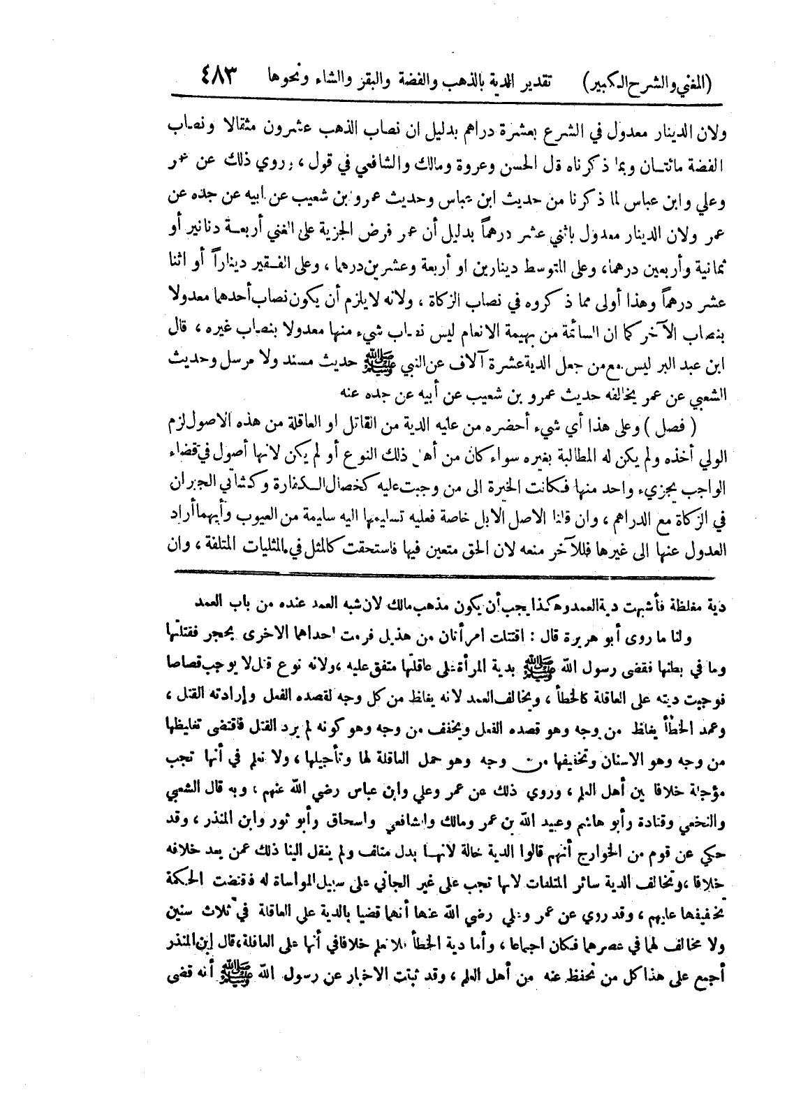 دية مغلظة فأشبهت دية العمد وهكذا يجب أن يكون مذهب مالك لأن شبه العمد عنده من باب العمد ولنا ما روى أبو هريرة قال: اقتتلت امرأتان من هذيل فرمت إحداهما الأخرى بحجر فقتلتها وما في بطنها فقضى رسول الله صلى الله عليه وسلم بدية المرأة على عاقلتها متفق عليه، ولأنه نوع قتل لا يوجب قصاصاً فوجبت ديته على العاقلة كالخطأ، ويخالف العمد لأنه يغلظ من كل وجه لقصده الفعل وارادته القتل، وعمد الخطأ يغلظ من وجه وهو قصده الفعل ويخفف من وجه وهو كونه لم يرد القصاص فاقتضى تغليظها من وجه وهو الانسان وتخفيفها من وجه وهو حمل العاقلة لها وتأجيلها، ولا نعلم في أنها تجب مؤجلة خلافا بين أهل العلم، وروي ذلك عن عمر وعلي وابن عباس رضي الله عنهم، وبه قال الشعبي والنخعي وقتادة وأبو هاشم وعبيد الله بن عمر ومالك والشافعي واسحاق وأبو ثور وابن المنذر، وقد حكي عن قوم من الخوارج أنهم قالوا الدية حالة لأنها بدل متلف ولم ينقل الينا ذلك عمن يعد خلافه خلافاً، وتخالف الدية سائر المتلفات لأنها تجب على غير الجاني على سبيل المواساة له فاقتضت الحكمة تخفيفها عليهم، وقد روي عن عمر وعلي رضي الله عنهما أنهما قضيا بالدية على العاقلة في ثلاث سنين ولا مخالف لهما في عصرهما فكان إجماعاً، وأما دية الخطأ فلا نعلم خلافاً في أنها على العاقلة، قال إبن المنذر أجمع على هذا كل من تحفظ عنه من أهل العم، وقد ثبتت الأخبار عن رسول الله صلى الله عليه وسلم أنه قضى
