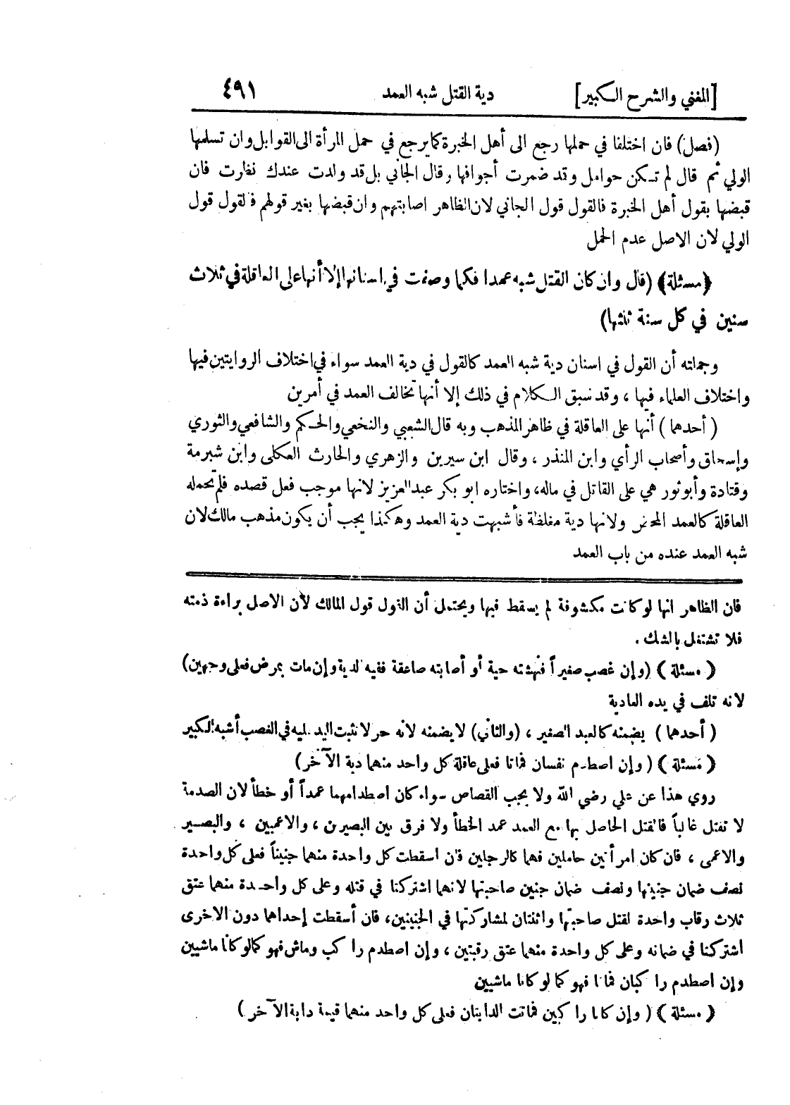 (مسألة) (وان غصب صغيرا فنهشة حية أو أصابته صاعقة ففيه الدية وإن مات بمرض فعلى وجهين) لأنه تلف في يده العادية (أحدهما) يضمنه كالعبد الصغير، (والثاني) لا يضمنه لأنه حر لا نثبت اليد عليه في الغصب أشبه الكبير (مسألة) (وان اصطدم نفسان فماتا فعلى عاقلة كل واحد منهما دية الآخر) روي هذا عن علي رضي الله ولا يجب القصاص سواء كان إصطدامها عمداً أو خطأ لأن الصدمة لا تقتل غالباً فالقتل الحاصل بها مع العمد عمد الخطأ ولا فرق بين البصيرين، والأعميين، والبصير والأعمى، فإن كان امرأتين حاملين فهما كالرجلين فإن أسقطت كل واحدة منهما جنبيا فعلى كل واحدة نصف ضمان جنينها ونصف ضمان جنين صاحبتها لانهما اشتركتا في قتله وعلى كل واحدة منهما عتق