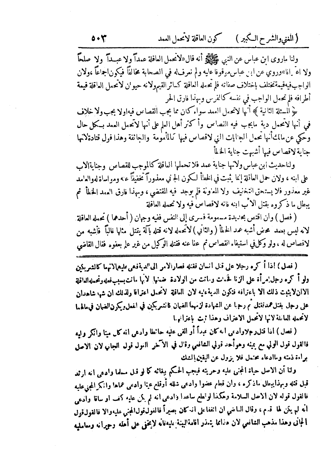 على رجل بقتل عمد فقتل ثم رجعا عن الشهادة لزمهما الضمان كالشريكين في الفعل ويكون الضمان في مالهما لا تحمله العاقلة لانها الاعتراف وهذا ثبت باعترافهما (فصل) إذا قتل رجلاً وادعى أنه كان عبداً أو القى عليه حائطاً وادعى أنه كان ميتاً وأنكر وليه فالقول قول الولي مع يمينه وهو أحد قولي الشافعي وقال في الآخر القول قول الجاني لأن الأصل براءة ذمته وما ادعاه محتمل فلا يزول عن اليقين بالشك ولنا أن الأصل حياة المجني عليه وحريته فيجب الحكم ببقائه كما لو قتل مسلماً وادعى أنه ارتد قبل قتله وبهذا يبطل ما ذكره، وإن قطع عضو أو إدعى شلله أو قلع عيناً وادعى عماها وأنكر المجني عليه فالقول قوله لأن الأصل السلامة وهكذ لو قطع ساعداً وادعى أنه لم يكن عليه كف أو ساقاً وادعى أنه لم يكن لها قدم، وقال القاضي إن اتفقا على أنه كان بصيراً فالقول قول المجني عليه وإلا فالقول قول الجاني وهذا مذهب الشافعي لأن هذا مما يتعذر إقامة البينة عليه فإنه لا يخفى على اهله وجيرانه ومعامليه