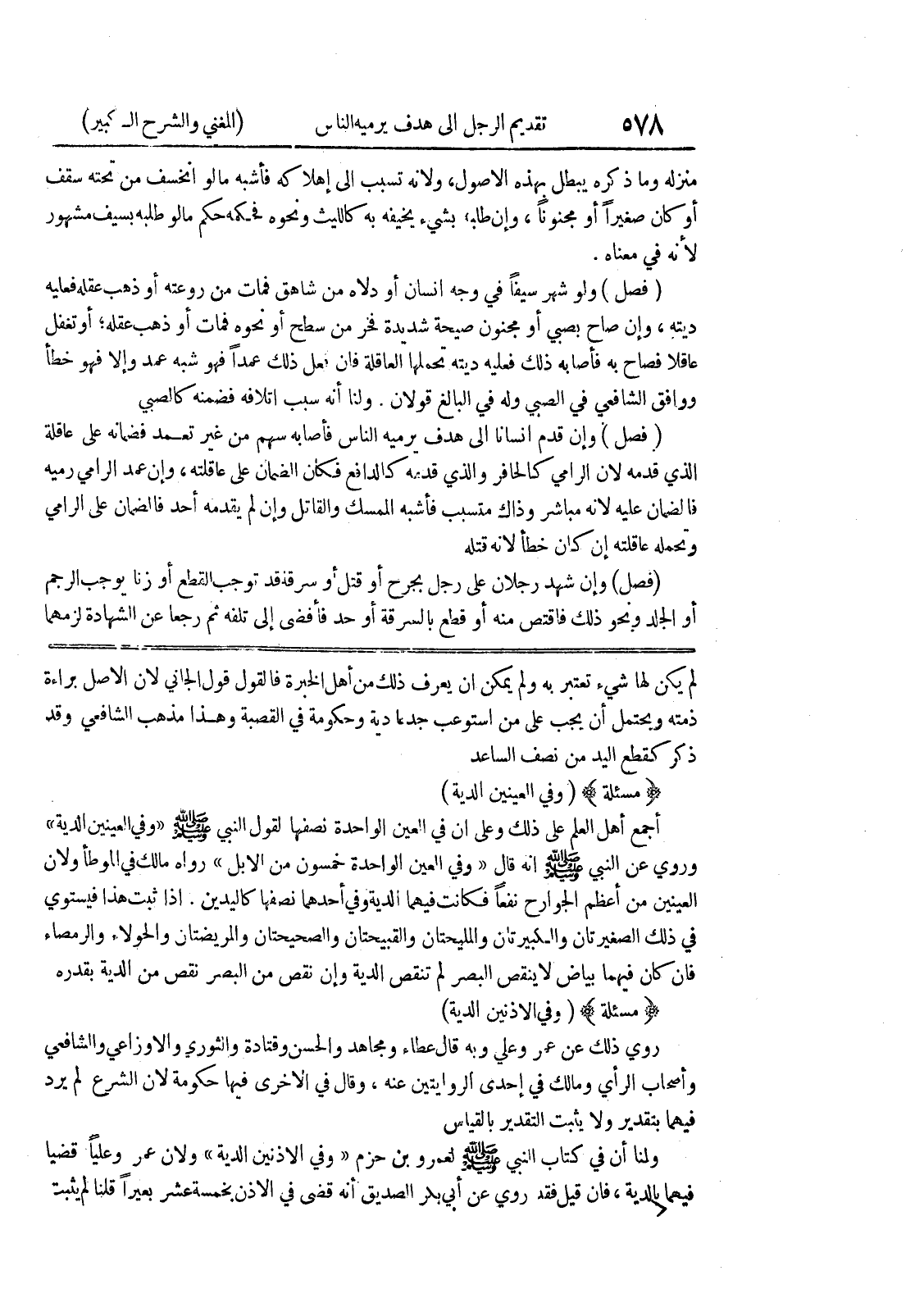 لم يكن لها شئ تعتبر به ولم يكن أن يعرف ذلك من أهل الخبرة فالقول قول الجاني لأن الأصل براءة ذمته ويحتمل أن يجب على من استوعب جدعاً دية وحكومة في القصبة وهذا مذهب الشافعي وقد ذكر كقطع اليد من نصف الساعد (مسألة) (وفي العينين الدية)