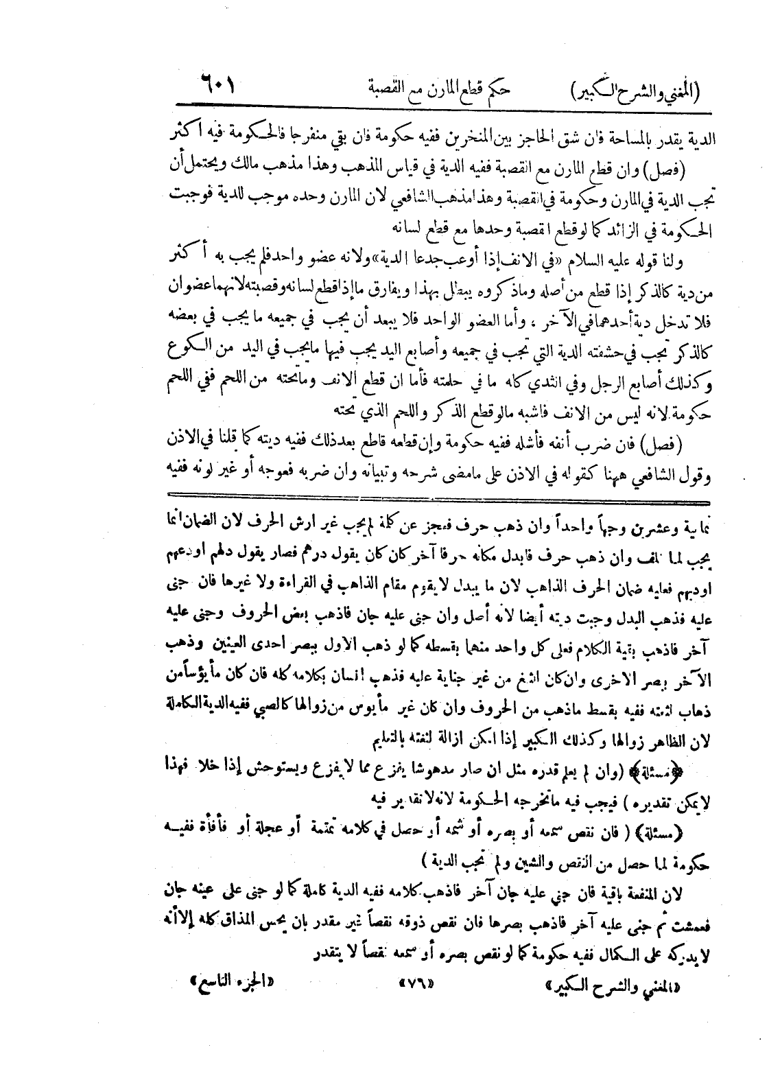 ثمانية وعشرين وجهاً واحداً وان ذهب حرف فعجز عن كلمة لم يجب غير ارش الحرف لأن الضمان إنما يجب لما تلف وان ذهب حرف فأبدل مكانه حرفاً آخر كان كأن يقول درهم فصار يقول دلهم أو دعهم أو ديهم فعليه ضمان الحرف الذاهب لأن ما يبدل لا يقوم مقام الذاهب في القراءة ولا غيرها فإن جنى عليه فذهب البدل وجبت ديته أيضاً لأنه أصل وإن جنى عليه جان فأذهب بعض الحروف وجنى عليه آخر فأذهب بقية الكلام فعلى كل واحد منهما بقسطه كما لو ذهب الأول ببصر إحدى العينين وذهب الآخر ببصر الأخرى وإن كان الثغ من غير جناية عليه فذهب انسان بكلامه كله فإن كان مأيؤسا من ذهاب لثغته ففيه بقسط ما ذهب من الحروف وإن كان غير مأيوس من زوالها كالصبي ففيه الدية الكاملة لأن الظاهر زوالها وكذلك الكبير إذا أمكن إزالة لثغته بالتعليم (مسألة) (وإن لم يعلم قدره مثل أن صار مدهوشاً يفزع مما لا يفزع ويستوحش إذا خلا فهذا