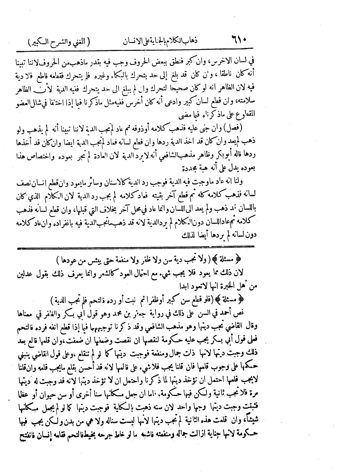 (مسألة) (ولا تجب دية سن ولا ظفر ولا منفعة حتى ييئس من عودها) لأن ذلك مما يعود فلا يجب شئ مع احتمال العود كالشعر وإنما يعرف ذلك بقول عدلين من أهل الخبرة أنها لا تعود أبداً (مسألة) (فلو قطع سن كبير أو ظفراً ثم نبت او رده فالتحم فلم تجب الدية)