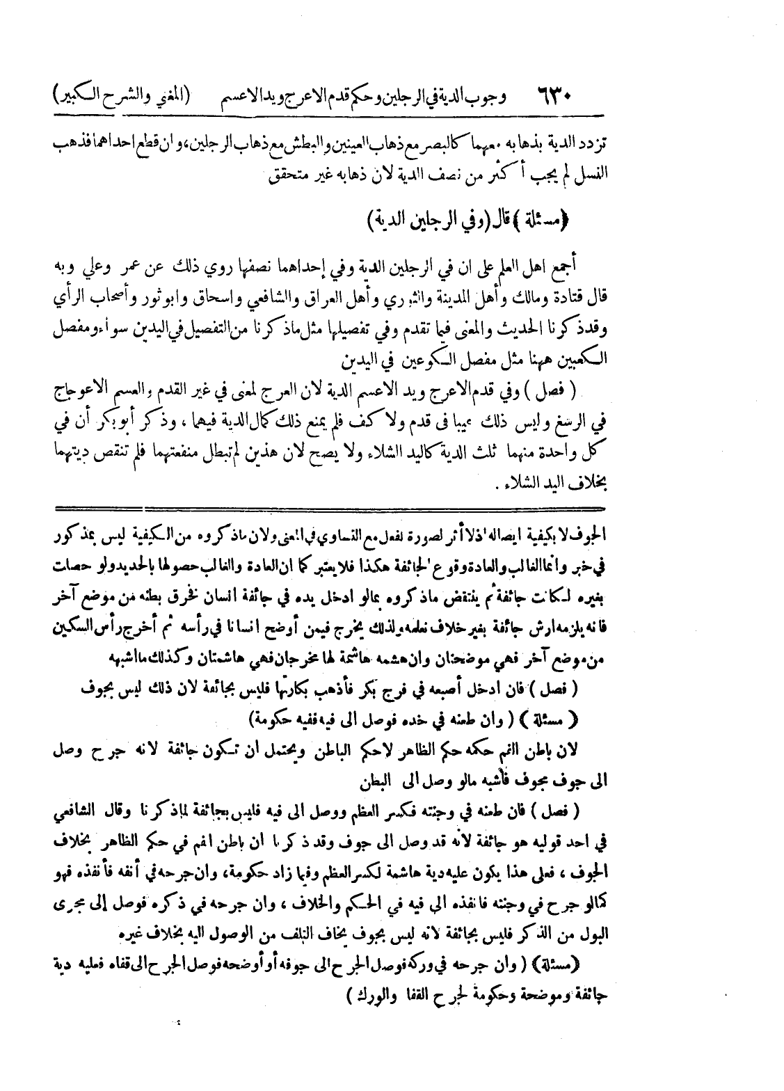 (مسألة) (وإن جرحه في وركه فوصل الجرح إلى جوفه او أوضحه فوصل الجرح إلى قفاه فعليه دية جائفة وموضحة وحكومة لجرح القفا والورك)