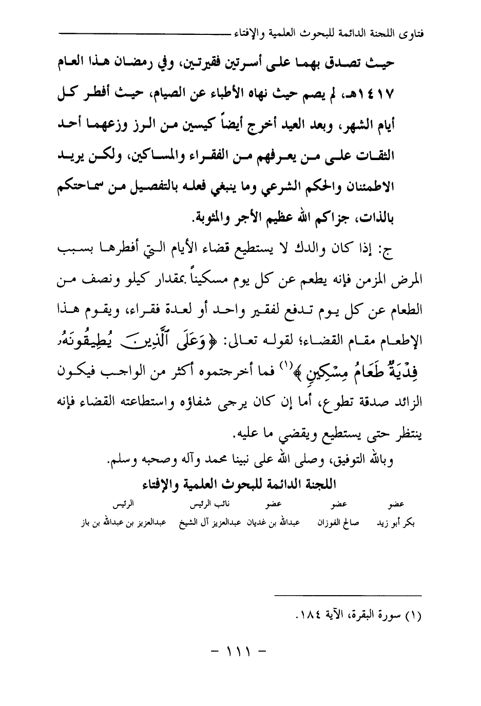 (¬1) سورة البقرة الآية 184