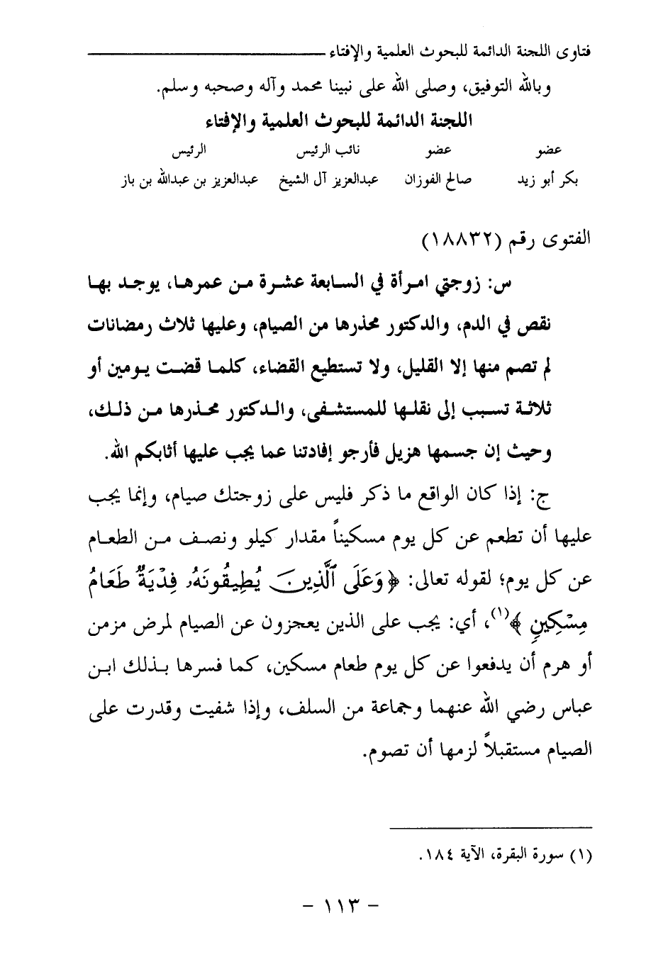 (¬1) سورة البقرة الآية 184