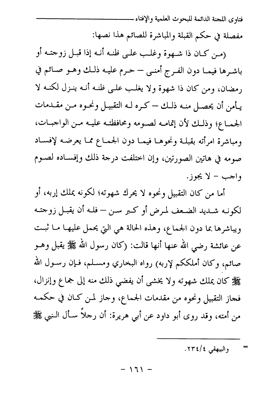 مفصلة في حكم القبلة والمباشرة للصائم هذا نصها:
