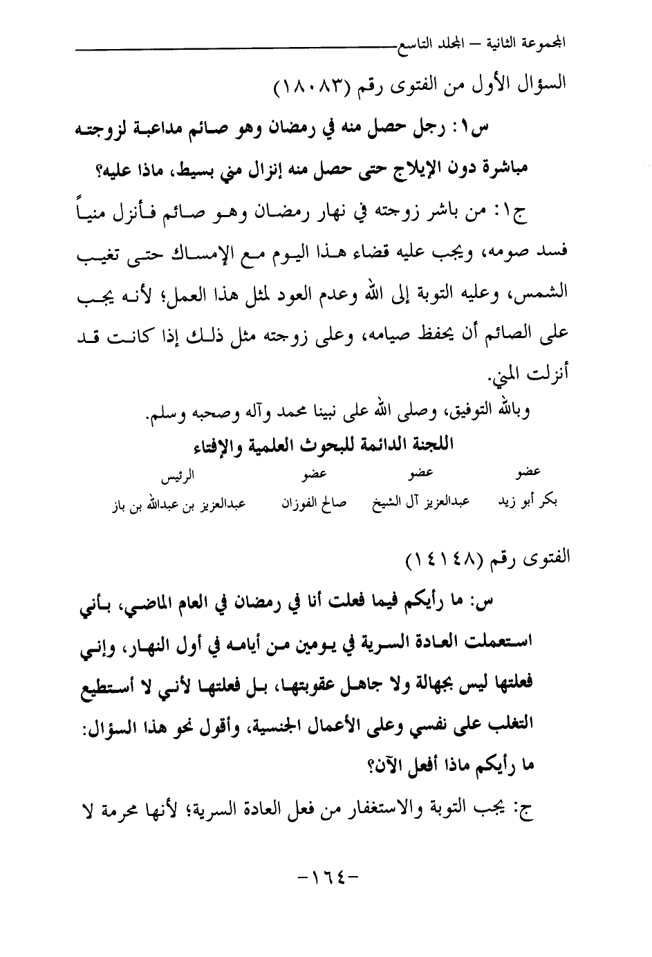 س: ما رأيكم فيما فعلت أنا في رمضان في العام الماضي، بأني استعملت العادة السرية في يومين من أيامه في أول النهار، وإني فعلتها ليس بجهالة ولا جاهل عقوبتها، بل فعلتها لأني لا أستطيع التغلب على نفسي وعلى الأعمال الجنسية، وأقول نحو هذا السؤال: ما رأيكم ماذا أفعل الآن؟