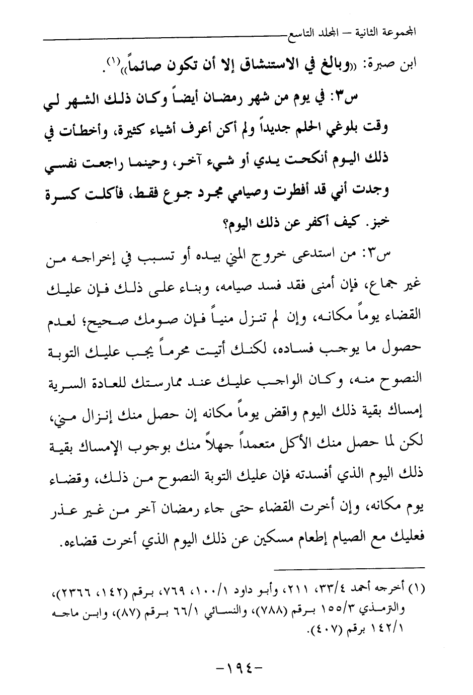 س3: في يوم من شهر رمضان أيضا وكان ذلك الشهر لي وقت بلوغي الحلم جديدا، ولم أكن أعرف أشياء كثيرة، وأخطأت في ذلك اليوم أنكحت يدي أو شيء آخر، وحينما راجعت نفسي وجدت أني قد أفطرت وصيامي مجرد جوع فقط، فأكلت كسرة خبز. كيف أكفر عن ذلك اليوم؟