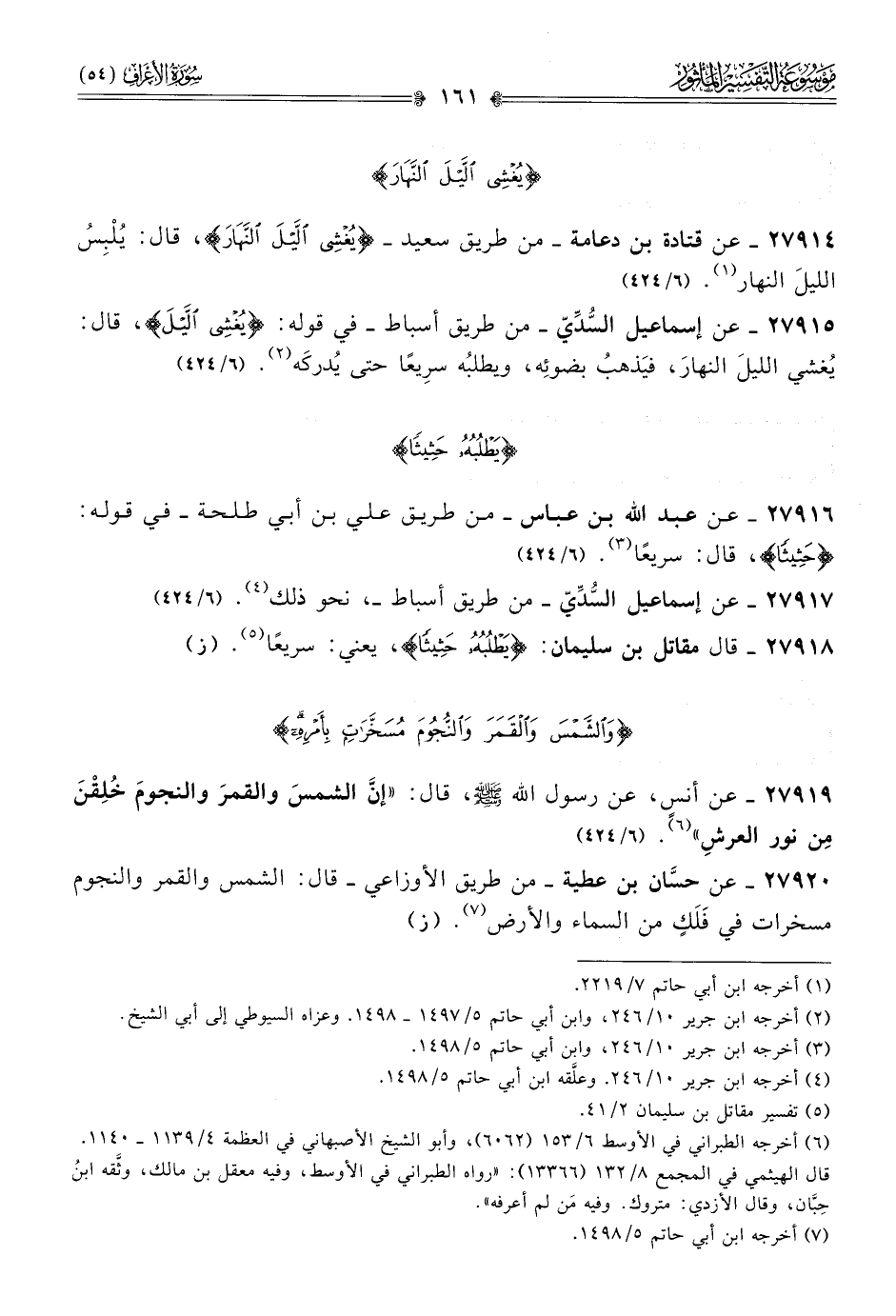 ٢٧٩١٨ - قال مقاتل بن سليمان: {يطلبه حثيثا}، يعني: سريعًا (¬٥). (ز)