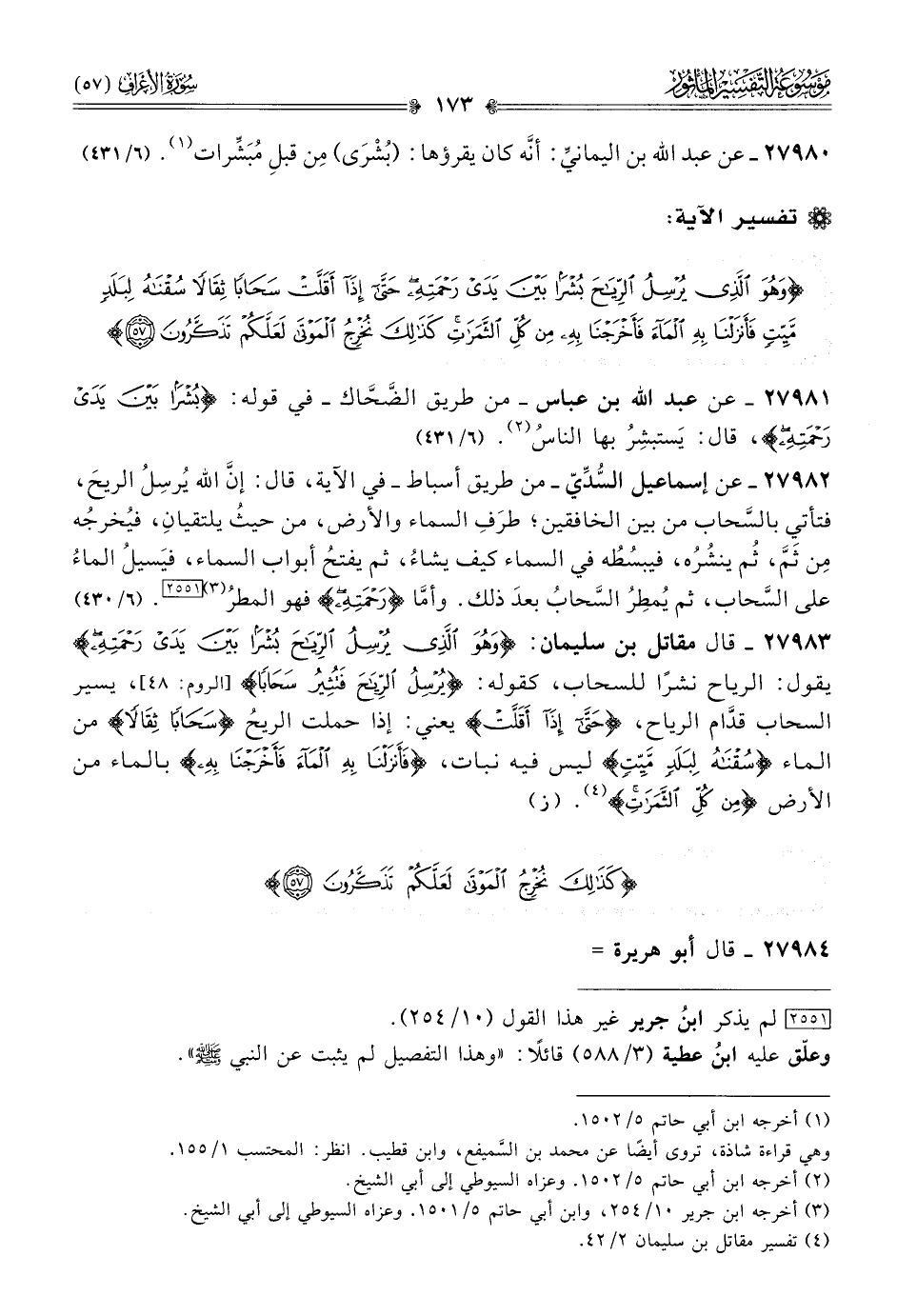 (¬٣) أخرجه ابن جرير ١٠/ ٢٥٤، وابن أبي حاتم ٥/ ١٥٠١. وعزاه السيوطي إلى أبي الشيخ.