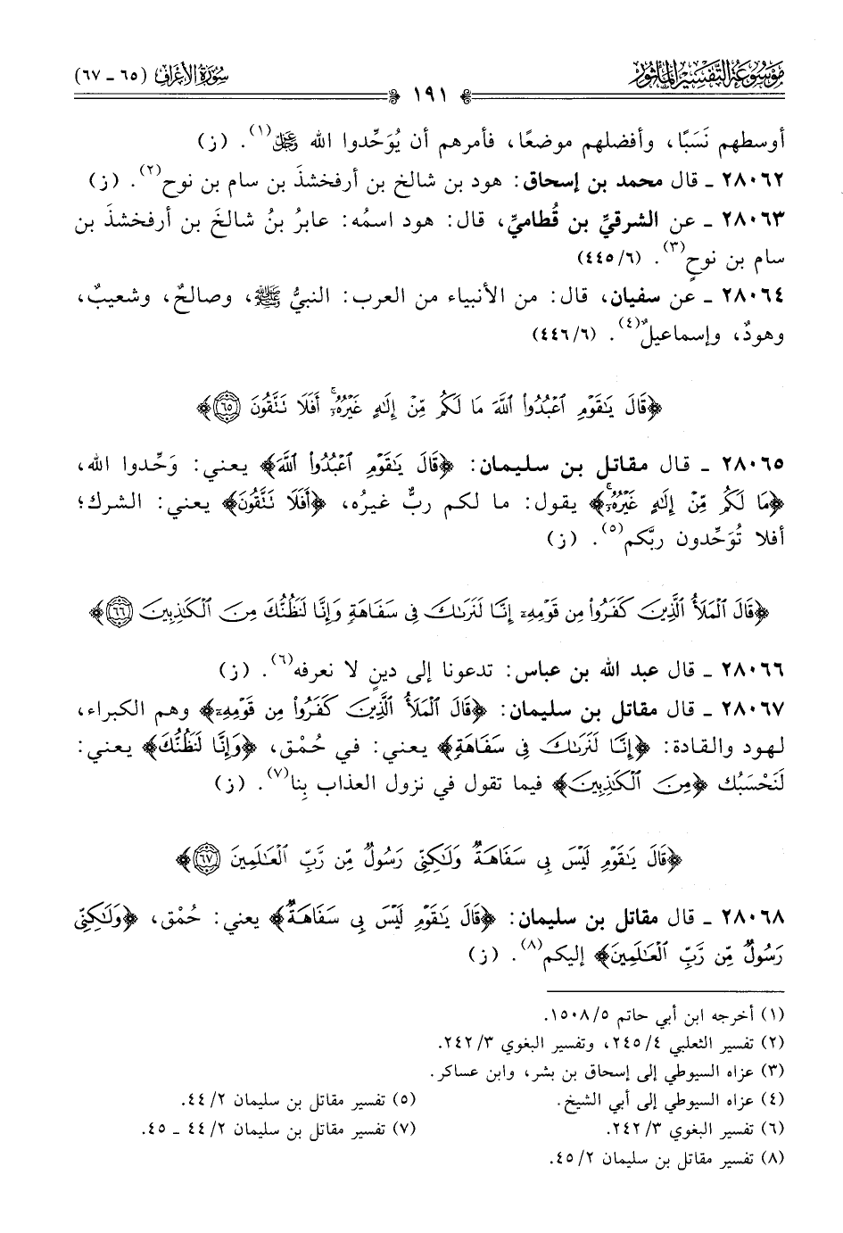 ٢٨٠٦٢ - قال محمد بن إسحاق: هود بن شالخ بن أرفخشذَ بن سام بن نوح (¬٢). (ز)
