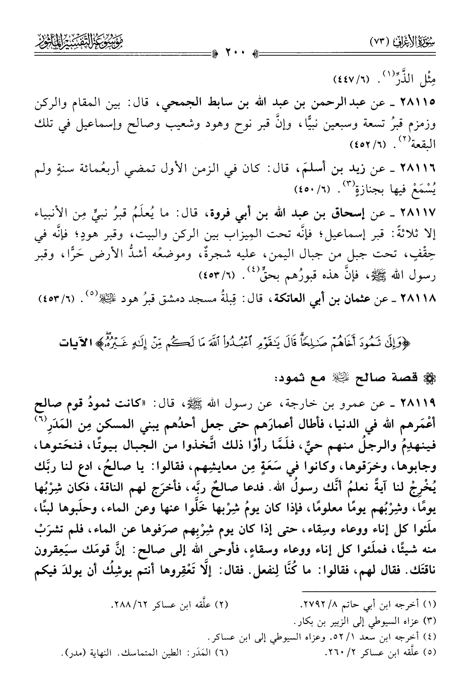 ٢٨١١٥ - عن عبد الرحمن بن عبد الله بن سابط الجمحي، قال: بين المقام والركن وزمزم قبرُ تسعة وسبعين نبيًّا، وإنّ قبر نوح وهود وشعيب وصالح وإسماعيل في تلك البقعة (¬٢). (٦/ ٤٥٢)