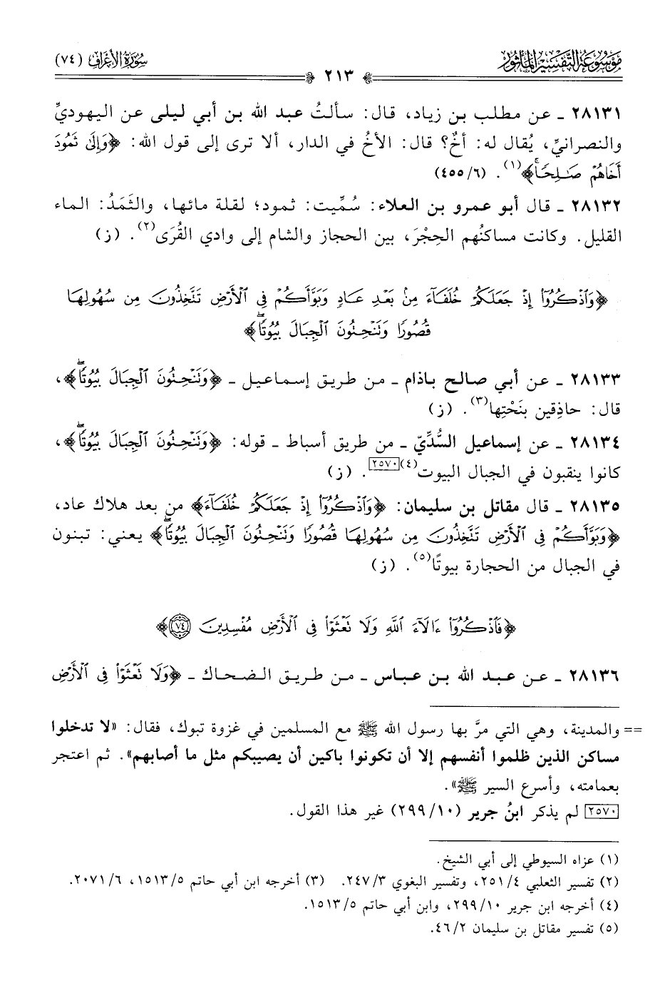 ٢٨١٣٢ - قال أبو عمرو بن العلاء: سُمِّيت: ثمود؛ لقلة مائها، والثَمَدُ: الماء القليل. وكانت مساكنُهم الحِجْرَ، بين الحجاز والشام إلى وادي القُرى (¬٢). (ز)