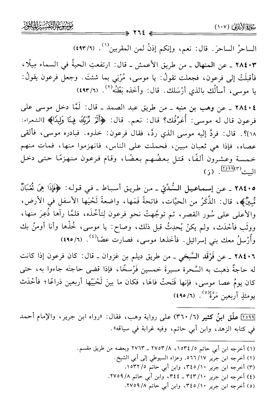 [٢٥٩٩] علّق ابنُ كثير (٦/ ٣٦٠) على رواية وهب، فقال: «رواه ابن جرير، والإمام أحمد في كتابه الزهد، وابن أبي حاتم، وفيه غرابة في سياقه».