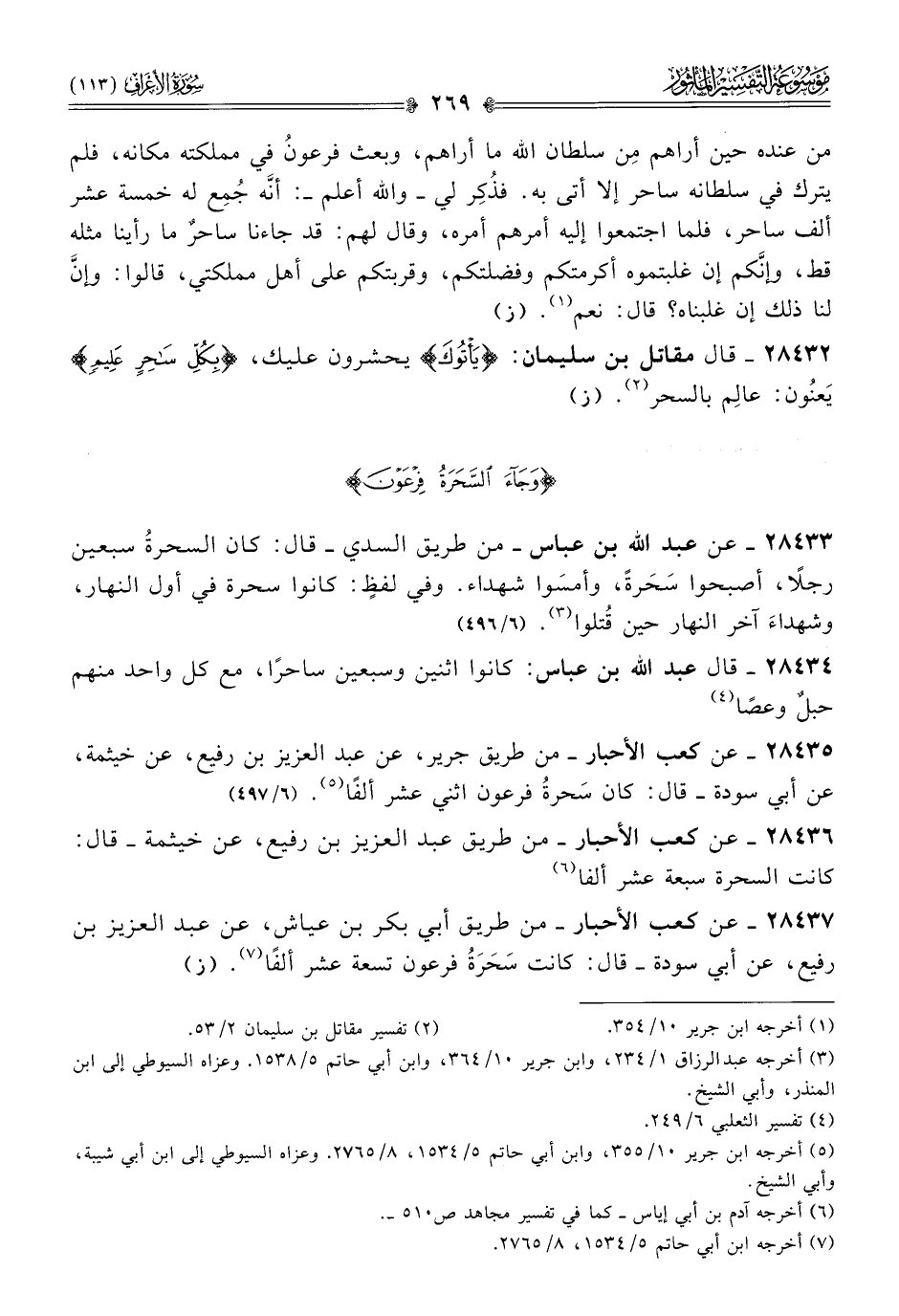 ٢٨٤٣٦ - عن كعب الأحبار -من طريق عبد العزيز بن رفيع، عن خيثمة- قال: كانت السحرة سبعة عشر ألفا (¬٦).