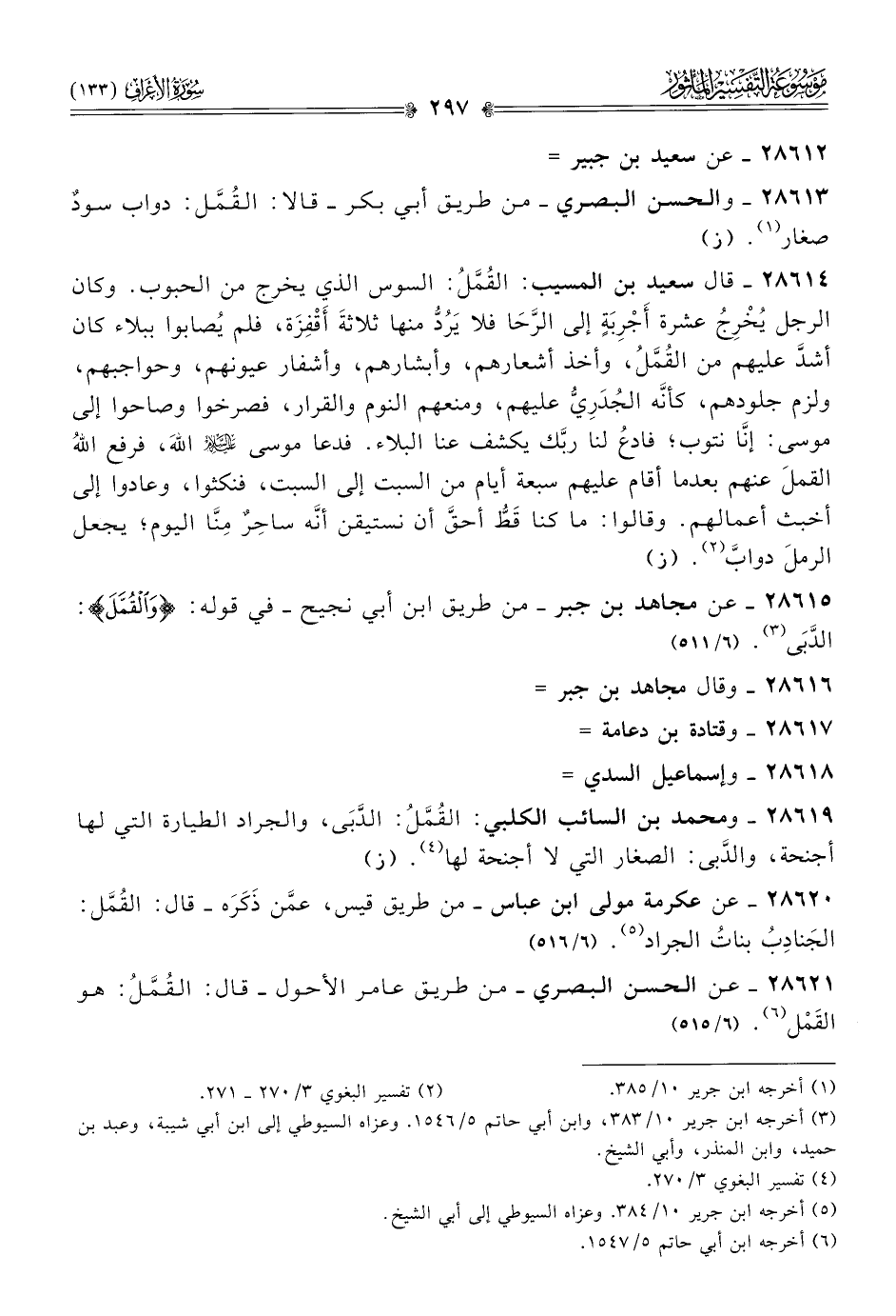 ٢٨٦٢١ - عن الحسن البصري -من طريق عامر الأحول- قال: القُمَّلُ: هو القَمْل (¬٦). (٦/ ٥١٦)