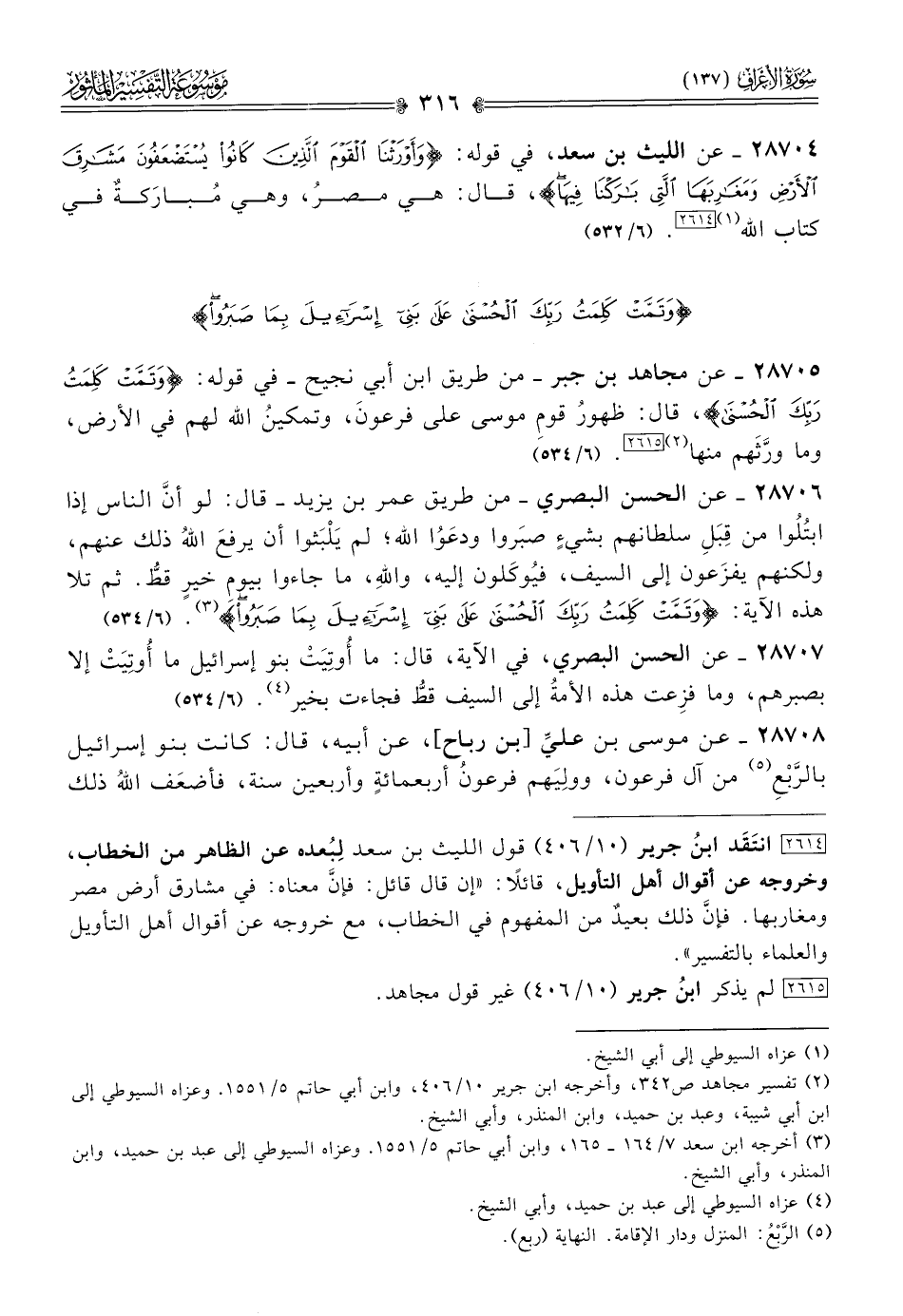[٢٦١٤] انتَقَد ابنُ جرير (١٠/ ٤٠٦) قول الليث بن سعد لِبُعده عن الظاهر من الخطاب، وخروجه عن أقوال أهل التأويل، قائلًا: «إن قال قائل: فإنّ معناه: في مشارق أرض مصر ومغاربها. فإنّ ذلك بعيدٌ من المفهوم في الخطاب، مع خروجه عن أقوال أهل التأويل والعلماء بالتفسير».