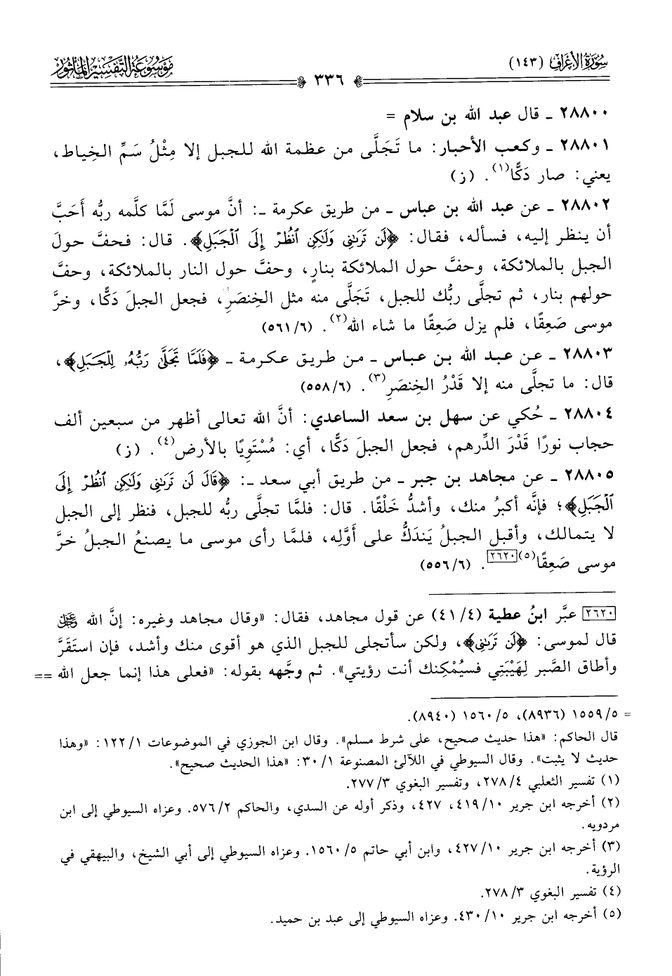 ٢٨٨٠١ - وكعب الأحبار: ما تَجَلّى من عظمة الله للجبل إلا مِثْلُ سَمِّ الخِياط، يعني: صار دَكًّا (¬١). (ز)