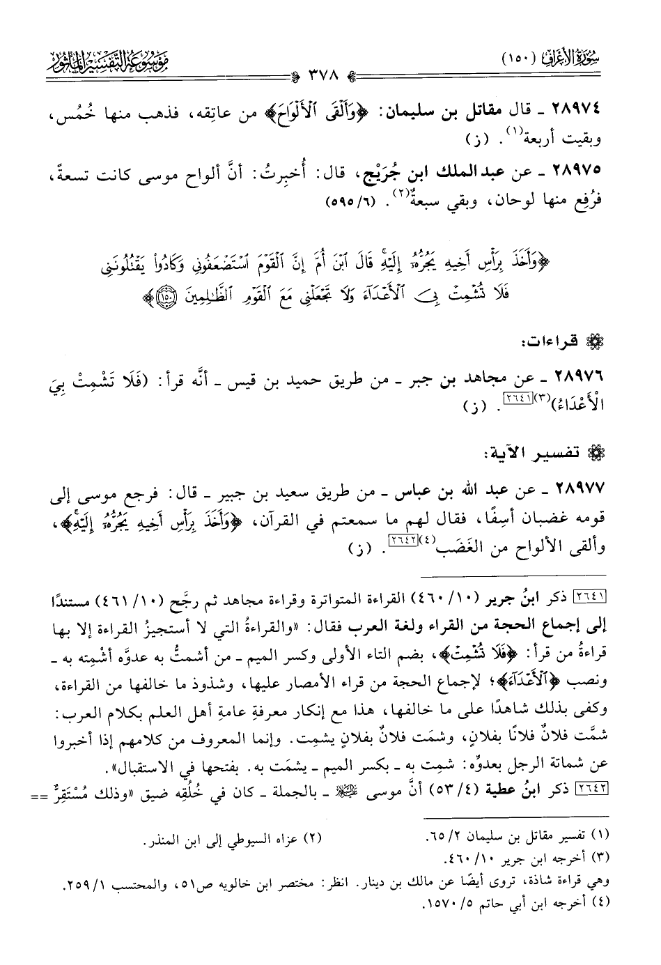 ٢٨٩٧٧ - عن عبد الله بن عباس -من طريق سعيد بن جبير- قال: فرجع موسى إلى قومه غضبان أسِفًا، فقال لهم ما سمعتم في القرآن، {وأخذ برأس أخيه يجره إليه}، وألقى الألواح من الغَضَب (¬٤) [٢٦٤٢]. (ز)