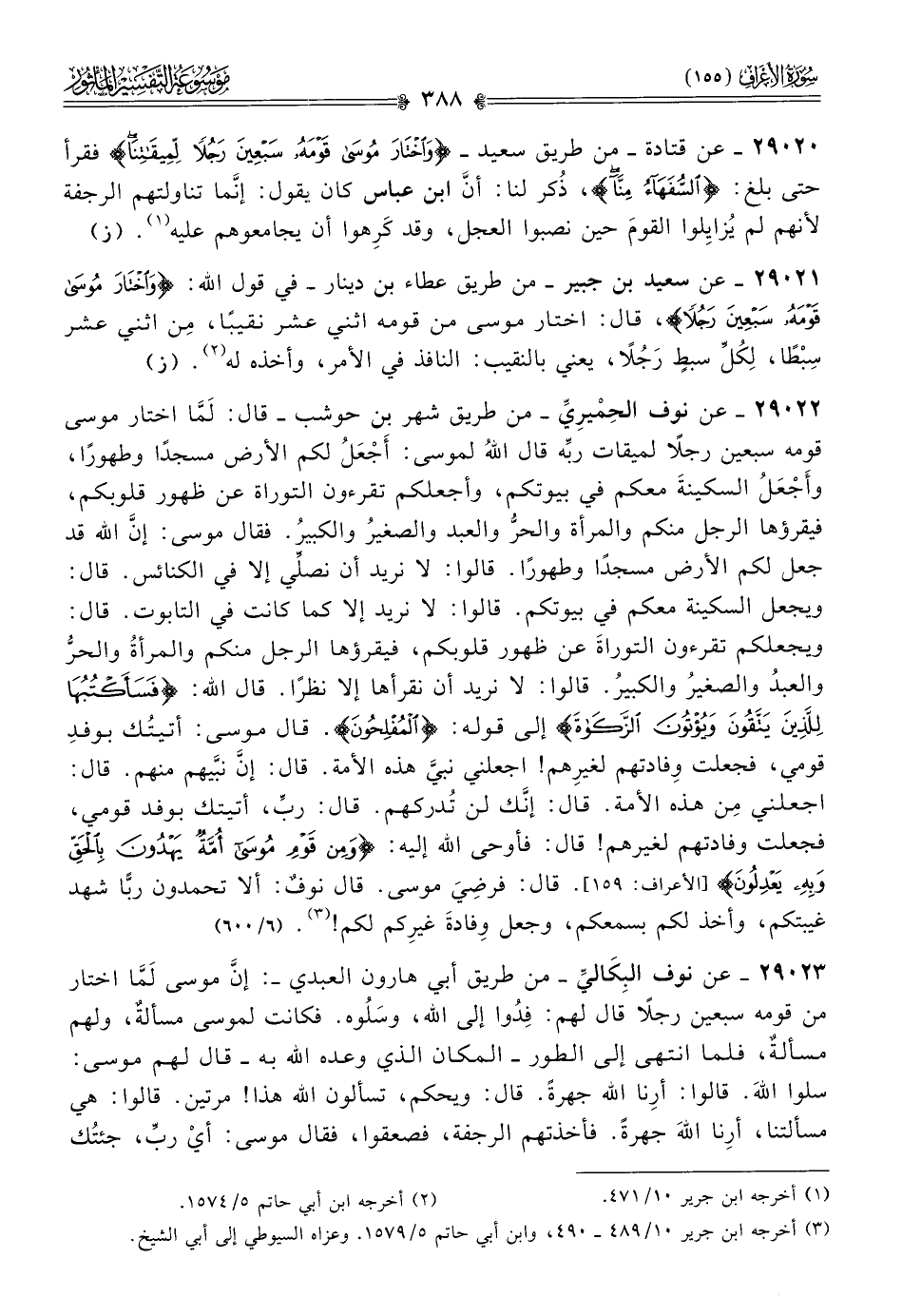 ٢٩٠٢٠ - عن قتادة -من طريق سعيد- {واخْتارَ مُوسى قَوْمَهُ سَبْعِينَ رَجُلًا لِمِيقاتِنا} فقرأ حتى بلغ: {السُّفَهاءُ مِنّا}، ذُكر لنا: أنّ ابن عباس كان يقول: إنّما تناولتهم الرجفة لأنهم لم يُزايِلوا القومَ حين نصبوا العجل، وقد كَرِهوا أن يجامعوهم عليه (¬١). (ز)