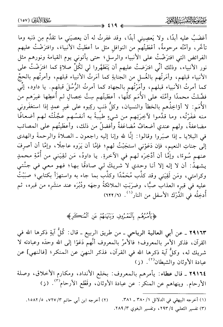 ٢٩١٦٤ - قال عطاء: يأمرهم بالمعروف: بخلع الأنداد، ومكارم الأخلاق، وصلة الأرحام. وينهاهم عن المنكر: عن عبادة الأوثان، وقَطْع الأرحام (¬٣). (ز)
