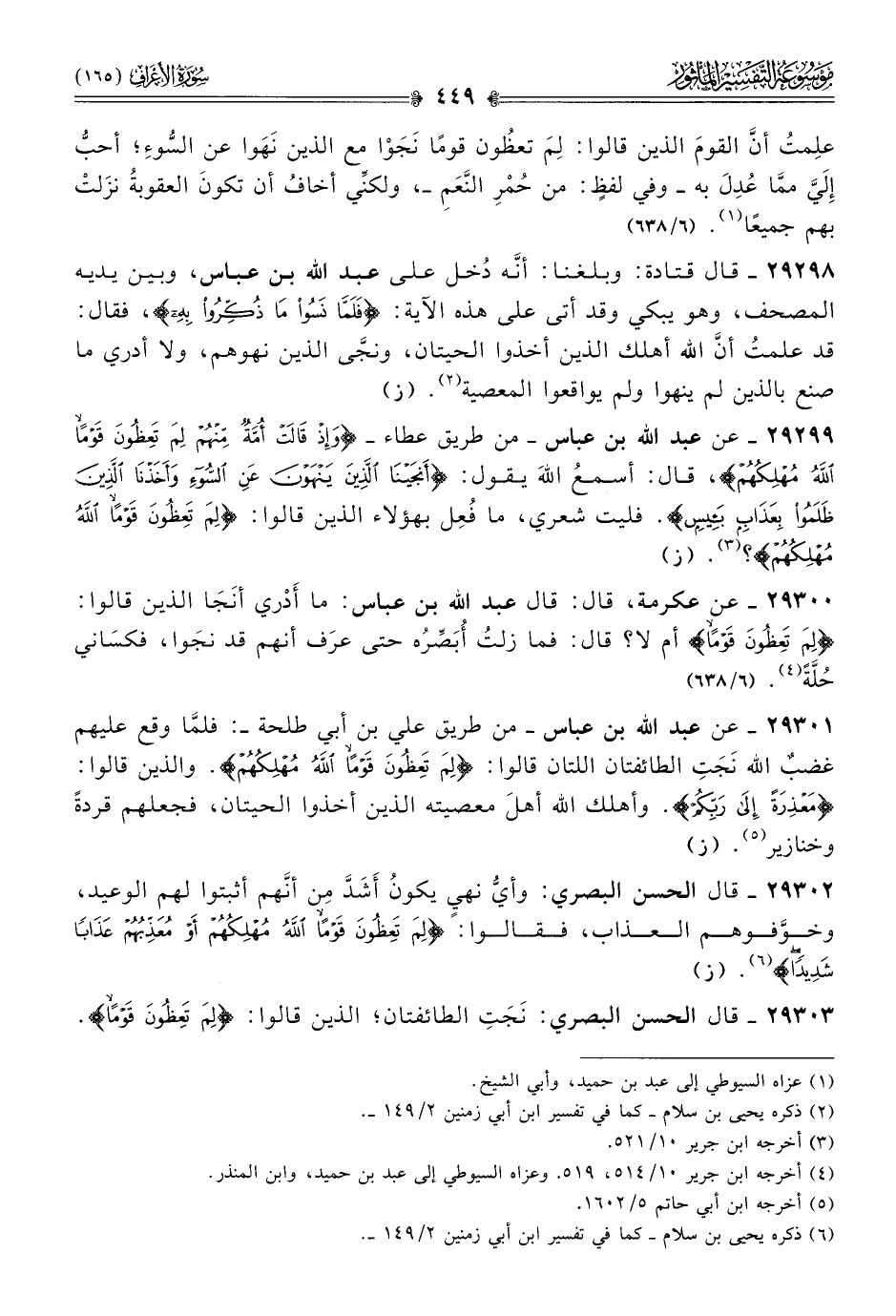 ٢٩٢٩٩ - عن عبد الله بن عباس -من طريق عطاء- {وإذْ قالَتْ أُمَّةٌ مِنهُمْ لِمَ تَعِظُونَ قَوْمًا اللَّهُ مُهْلِكُهُمْ}، قال: أسمعُ اللهَ يقول: {أنْجَيْنا الَّذِينَ يَنْهَوْنَ عَنِ السُّوءِ وأَخَذْنا الَّذِينَ ظَلَمُوا بِعَذابٍ بَئِيسٍ}. فليت شعري، ما فُعِل بهؤلاء الذين قالوا: {لِمَ تَعِظُونَ قَوْمًا اللَّهُ مُهْلِكُهُمْ}؟ (¬٣). (ز)