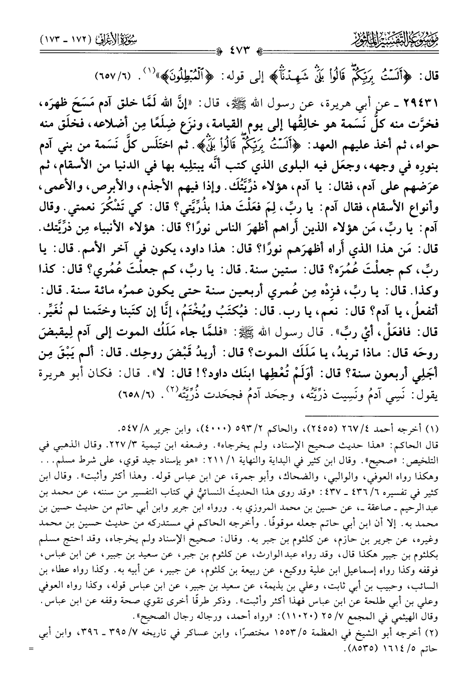 قال: {ألست بربكم قالوا بلى شهدنا} إلى قوله: {المبطلون}» (¬١). (٦/ ٦٥٧)