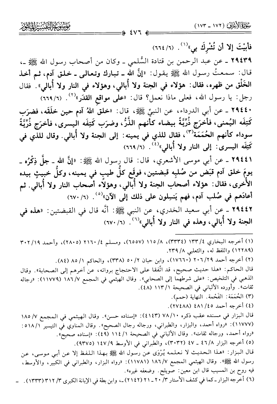 ٢٩٤٤٢ - عن أبي سعيد الخدري، عن النبي - صلى الله عليه وسلم -، أنّه قال في القبضتين: «هذه في الجنة ولا أُبالي، وهذه في النار ولا أُبالي» (¬٦). (٦/ ٦٧٠)