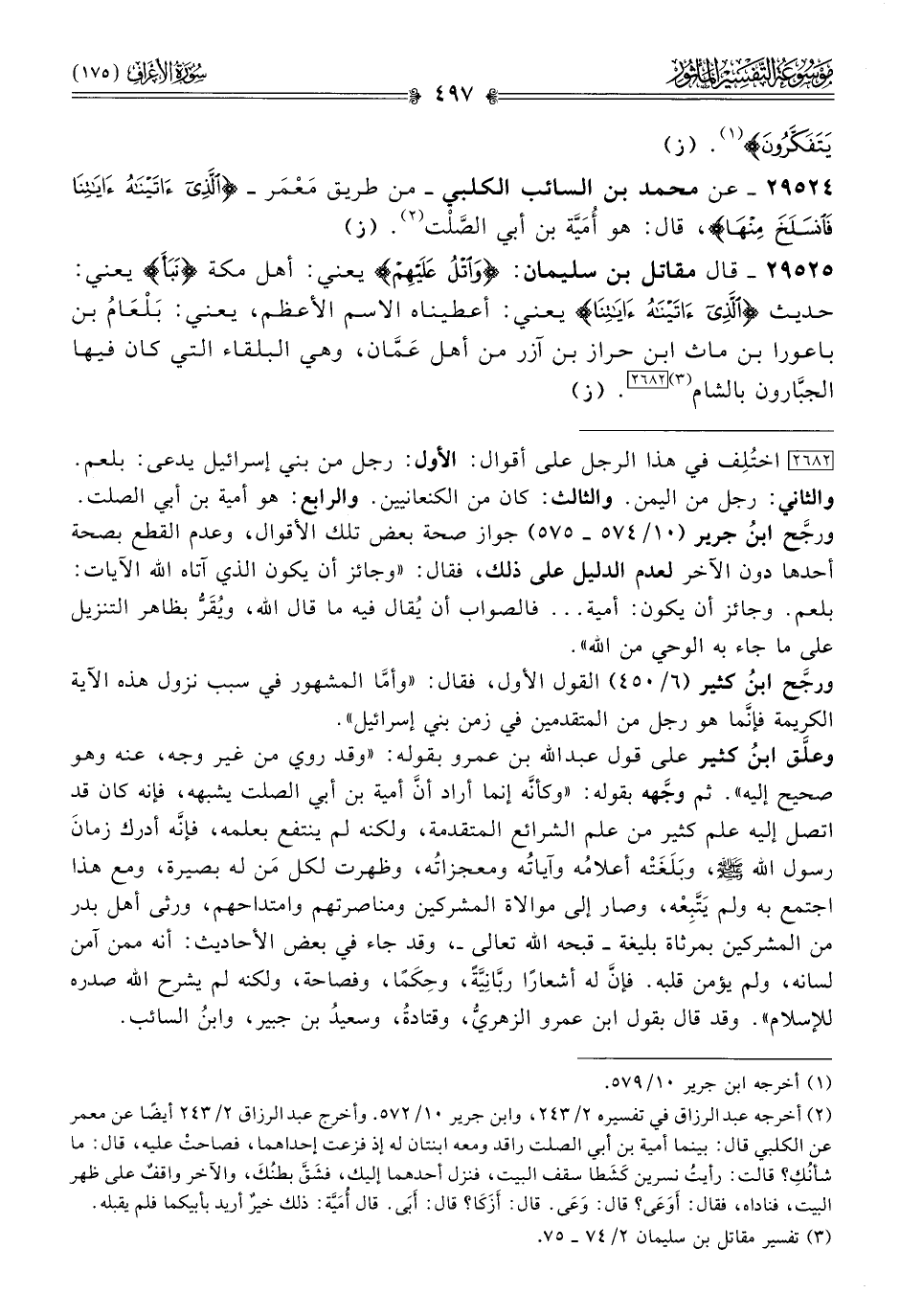 ٢٩٥٢٤ - عن محمد بن السائب الكلبي -من طريق مَعْمَر- {الذي آتيناه آياتنا فانسلخ منها}، قال: هو أُمَيَّة بن أبي الصَّلْت (¬٢). (ز)