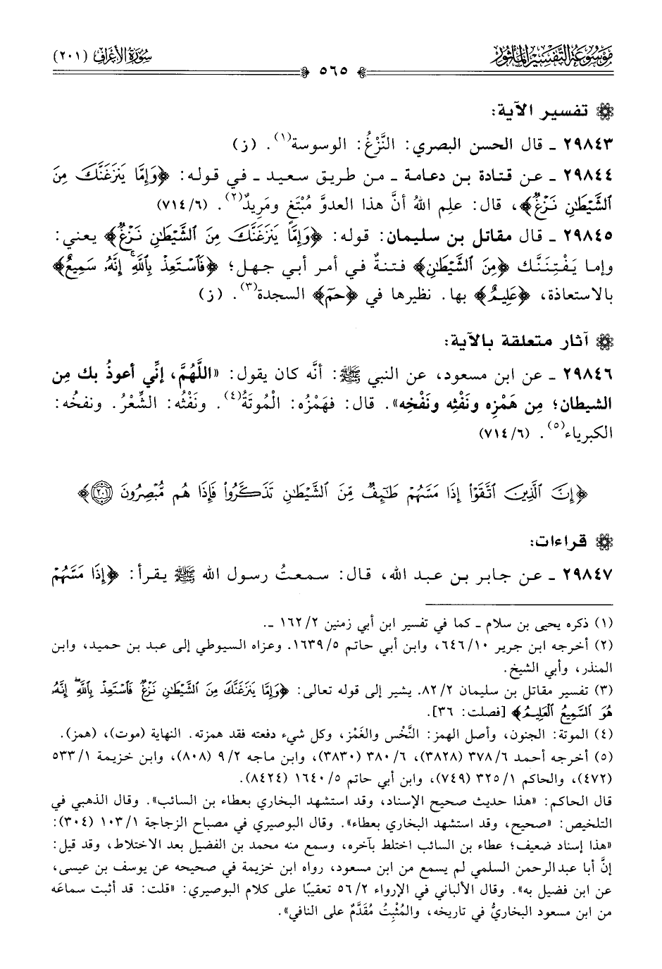 ٢٩٨٤٤ - عن قتادة بن دعامة -من طريق سعيد- في قوله: {وإما ينزغنك من الشيطان نزغ}، قال: علِم اللهُ أنّ هذا العدوَّ مُبْتَغٍ ومَرِيدٌ (¬٢). (٦/ ٧١٤)
