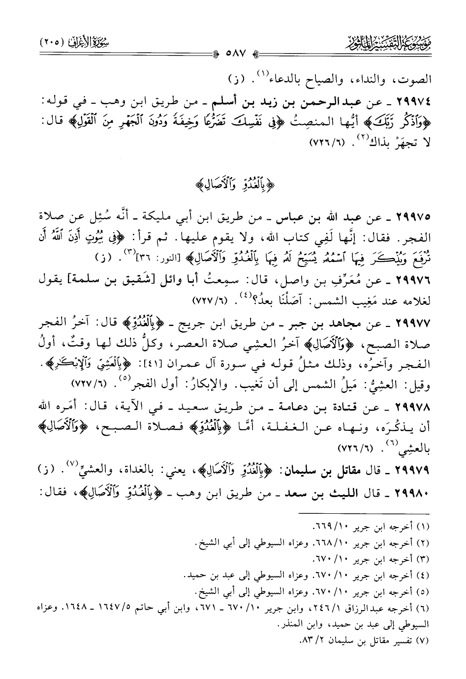 ٢٩٩٧٩ - قال مقاتل بن سليمان: {بِالغُدُوِّ والآصالِ}، يعني: بالغداة، والعشيِّ (¬٧). (ز)